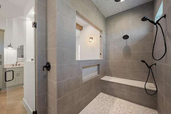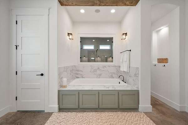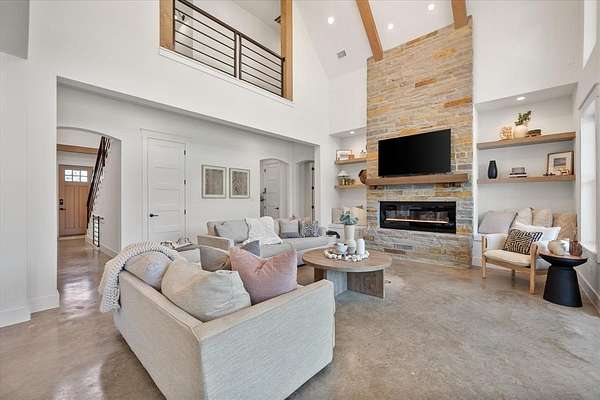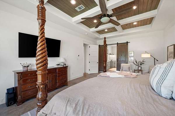 The private primary suite showcases wood and beamed ceilings, a cozy sitting area, and exceptional space. The luxurious ensuite bath includes an oversized shower, jetted tub, and a custom closet with built-ins--creating a true retreat. Upstairs, you'll find three additional bedrooms, two full baths, and a versatile flex space ideal for a media room or second living area.