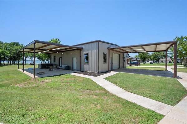 Outside, you'll discover a 2,000 sq ft workshop with plumbing and electricity, covered RV space with additional hook ups offering the possibility of short term rental income! Nearly 700 linear feet of WATER FRONTAGE provide unmatched access and beautiful views of Richland Chambers Lake.