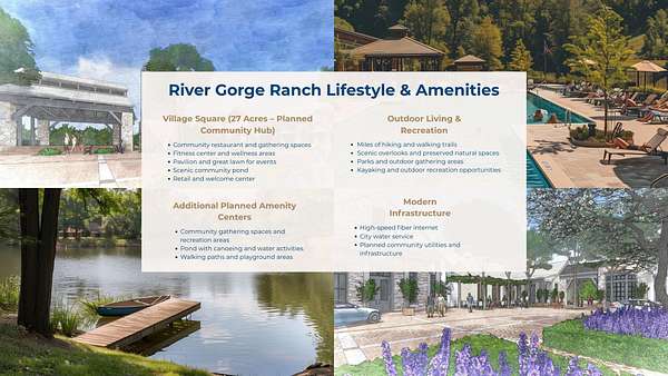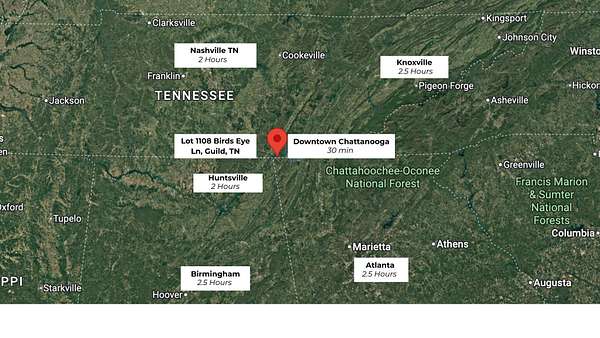 Welcome to Lot 1108 on Birds Eye Way, located in Phase 1A of River Gorge Ranch, a gated mountaintop community overlooking the Tennessee River Gorge just 25 minutes from downtown Chattanooga. This homesite offers a beautifully positioned and highly buildable setting, featuring substantial road frontage and a gently sloping to mostly level terrain, allowing flexibility in home placement. The lot provides multiple building options for a primary residence or mountain retreat while maintaining privacy within the community. Situated on a quiet cul de sac, the property enjoys a peaceful setting with limited through traffic while still being conveniently located near the gated entrance and the future Village Square, the planned 27 acre community hub that will feature gathering spaces, dining, recreation, and social amenities. River Gorge Ranch is designed to combine natural mountain beauty with thoughtfully planned infrastructure, including fiber internet, city water, and preserved outdoor spaces. Residents will enjoy miles of hiking and walking trails, scenic overlooks of the Tennessee River Gorge, and access to the community's expanding amenity offerings. At the entrance to the community, Riverdance Restaurant and Venue provides a stunning dining and event destination with panoramic river and mountain views, adding a unique lifestyle element rarely found in mountain communities. HOA dues are $975 annually, with $605 allocated to the homeowners association and $370 supporting the community fire department. Whether you envision a full time residence or a private mountain retreat, Lot 1108 offers the opportunity to build within one of the region's most distinctive new communities while enjoying space, scenery, and long term potential. Information is deemed reliable but not guaranteed. Buyer to verify all information important to them. Any and all property lines on photos are simulated and are approximate.