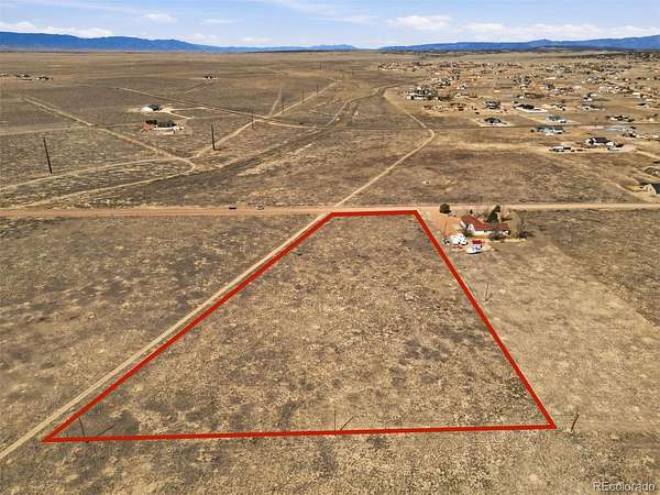 A rare opportunity to own 3.92 acres in Pueblo West! This parcel has not been available for decades. This large parcel offers additional space and flexibility beyond the more typical 0.5–1.5 acre lots in the area. Tucked into a quiet pocket of the community, the property backs to open space on the east and south sides, enhancing the sense of separation and surrounding landscape. Beautiful views include Pikes Peak, the Wet Mountains, a few peaks of the distant Sangre de Cristo range, and the Spanish Peaks to the south. Open eastern exposure allows for expansive sunrise views, with southern light across the property throughout the day.