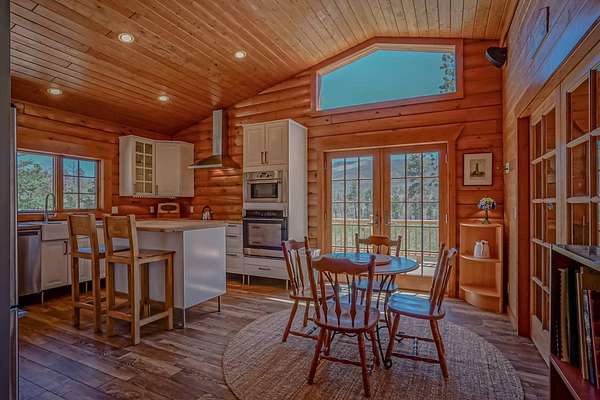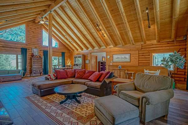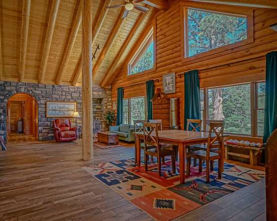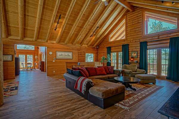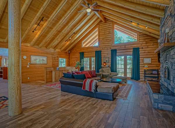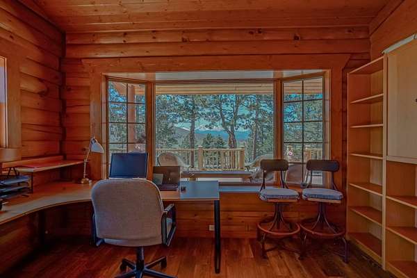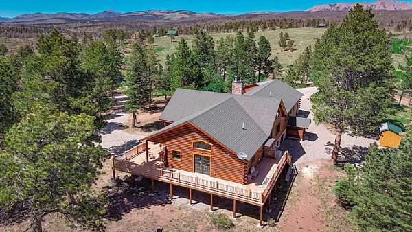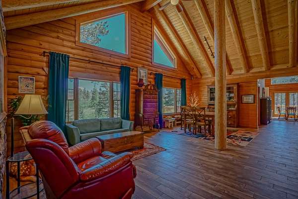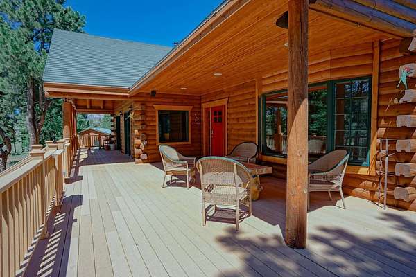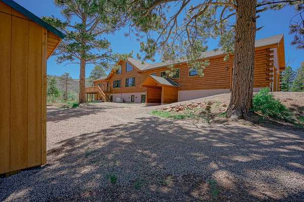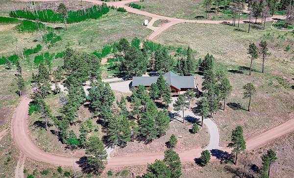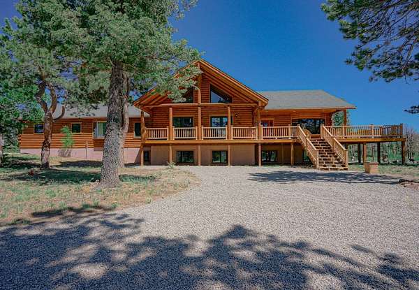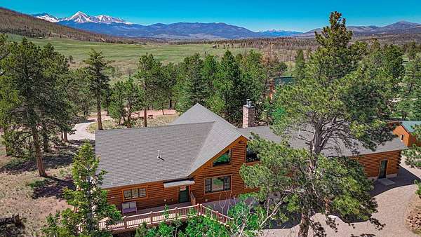 Gorgeous 3829 SF custom built Log Mountain Home located in the Southern Colorado Rockies with Spectacular Views of High Mountain Ranges and Green Mountain Meadows on 3.7 acres, surrounded by Aspen and Majestic Ponderosa Trees. Forbes Park is a high end, gated, 13,000 acres Mountain Community at 8000-10,000 Ft altitude, developed by Malcomb Forbes in the mid 1970's. The large wrap-around maintenance free deck is fabulous for wildlife and sunset watching. Wildlife is abundant, ranging from elk, deer, bear, bobcat to wild turkey, squirrels and hummingbirds. The open concept Main Floor offers a Beautiful and Spacious Living Room, with big windows and lots of natural light, a Rock Wall and vaulted ceilings, a large eat-in kitchen, an office with bay window and an en-suite master bedroom and adjacent, large walk-in closet room. Gather around the stunning, large fireplace with friends and family for an unforgettable Christmas! The home is in excellent condition and move in ready with all furniture, beds, kitchen appliances and utensils included. The beautifully finished 9' high lower floor has its own guest entrance, 4 spacious bedrooms, a large full bathroom, a second living room, kitchenette and workout room with a hot tub and sauna. Plumbing is in place for an additional bathroom or shower. In floor, high efficiency radiant heat (7 zones) will keep everyone cozy and warm in the winter. The house is very well insulated and highly suitable for year-round living. The on-demand water heater means unlimited hot water. Your private well provides THE best tasting, coolest and cleanest Rocky Mountain water. High-speed fiber Gigabit Internet is installed, so you can work from home and stream movies and TV. The oversized two car garage is attached, and there is a separate one car garage/workshop and a wood storage shed. The HOA has its own equipment and an excellent crew for snow plowing and road maintenance for year around access, provides security, trash removal and a community center, where regularly fun events and meetings are organized. Summers are cool and winter temperatures are moderate with around 150"-180" of snow annually. Sunshine is abundant year around. Cross country skiing out of the back door. Hunting is not allowed in the Park, but hunters can hunt in the adjacent San Isabel National Forest. The Forbes Park community consists of about 300 mountain homes and cabins and about 1/3 of the park is common wildlife and meadows area.