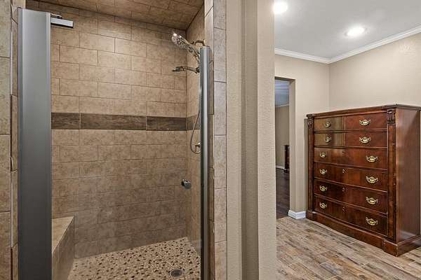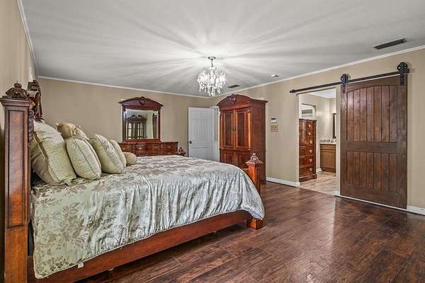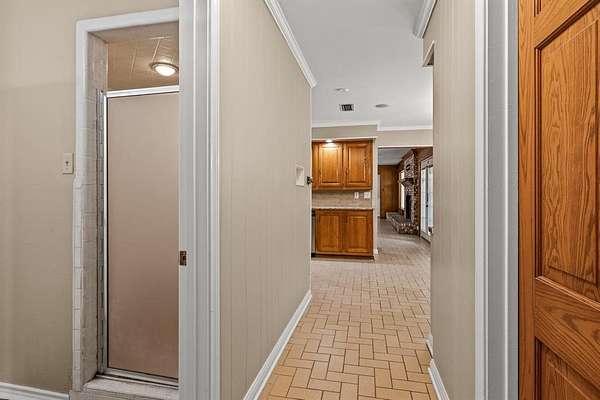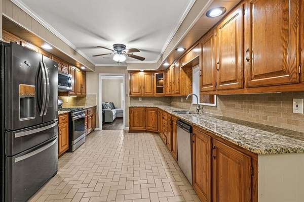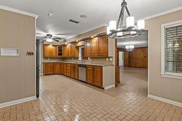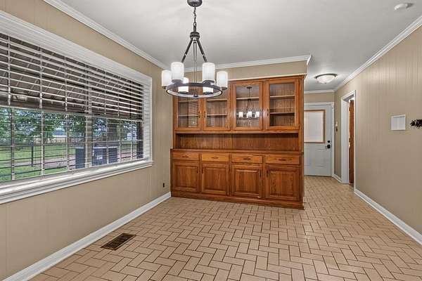 Nestled in the heart of downtown Pittsburg, this spacious 4 bed, 3 bath residence spans over 2,900 square feet of luxurious living space. The grand living room is highlighted by a charming wood burning brick fireplace and exquisite paneling, creating a warm and inviting ambiance. The well-equipped eat-in kitchen is a culinary dream, featuring granite countertops and top-of-the-line stainless steel appliances, perfect for preparing meals for a large family gathering. The primary suite is a sanctuary on its own, offering an ensuite bath with generous closets, dual sinks, and a sleek glass shower. Three additional guest rooms share two well-appointed baths, ensuring comfort and convenience for visitors. Situated on nearly 2 acres, the fenced yard provides an expansive outdoor playground for kids to enjoy endless hours of fun and play.