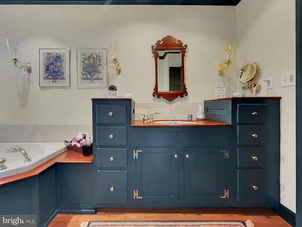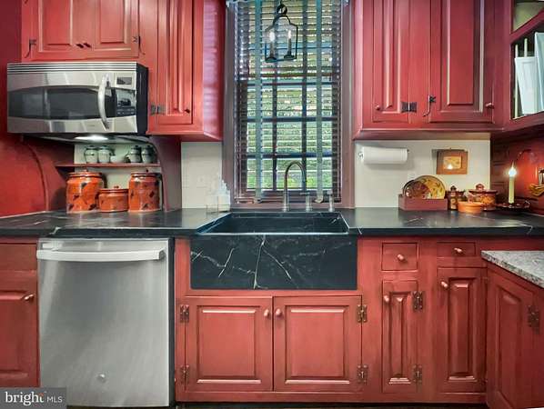 Gorgeous 3 Bedroom and 2.5 Bathroom 18th Century Reproduction on 3.75 quiet and private acres in Alburtis. This exceptional property has been lovingly and masterfully recreated based upon the blueprints of the Orrell House at Colonial Williamsburg. Built by the Sellers, with a passion for early homes, no detail has been overlooked in either the home itself or the Colonial Gardens and period style Outbuildings that make up the property. This home includes a combination of reclaimed materials, reproductions and master craftsmanship to produce the most authentic reproduction of a colonial home possible. The charm of this property is apparent as soon as you pull down the driveway but the experience truly begins as you open the front door and step into the formal Entry Hall. This welcoming space features an antique wood banister which was incorporated into the staircase, baseboard and crown molding, and Southern Yellow Pine hardwood flooring with face cut nails and radiant heat. The formal Living Room has a Rumford Fireplace as its focal point and features a beautiful wood mantle and molding throughout. The custom Chef's Kitchen includes a soapstone countertop and sink, custom raised panel cabinetry, a center island with a Bird's Eye Maple countertop and GE appliances. The adjacent Dining Room features a Rumford Fireplace, a built in cabinet, baseboard and crown molding, and Yellow Pine hardwood flooring with radiant heat. The charming Mud Room includes a brick floor with radiant heat, molding and a Moravian tile countertop and sink. This space also provides access to the back porch, as well as, the full Bathroom. The Bathroom features a walk -in shower, a Tiger Maple vanity, and a brick floor with radiant heat. Upstairs, The Primary Bedroom is a beautiful space featuring a Rumford Fireplace with custom mantle, a walk- in closet and Yellow Pine flooring with radiant heat.. The second Bedroom Includes a faux Fireplace and Mantle, baseboard and crown molding, and a closet. The full Bathroom on this level includes a jetted soaking tub, custom vanity with hand painted porcelain sink and a radiant heat floor. The third Bedroom is on the Upper Level and also features storage closets and radiant heat. The Lower Level contains a beautiful Family Room which features a Rumford Fireplace and a "Caged Bar" and allows a generous space for relaxing or entertaining. This level is completed by the Laundry Room which features a brick floor with radiant heat, a soapstone utility sink and built- in custom cabinetry. Outside the property includes a 3 Car Garage with a dog kennel and run, as well as, an outdoor Fireplace, colonial Gardens, and period style Outbuildings. This property is being offered for sale as- is. Schedule your private showing today and come experience all that this exceptional property has to offer first hand!