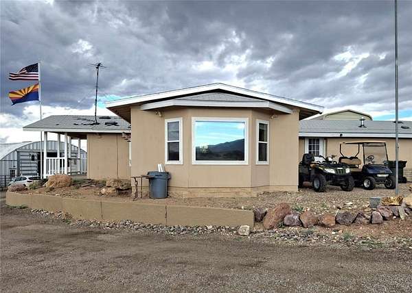 With interest rates falling, dont miss this opportunity to purchase the perfect horse or other livestock property in Northern Arizona. Friendly horse Community. Low taxes. Clean air. Mountain views. Watch my Virtual Tour to get a glimpse of this Fantastic Horse Property with Ranch Home for Sale in Kingman Arizona. Sits on 5.88 acres with 4,300 elevation. 7 ft high quality fencing surrounds entire property plus 1,900 ft of internal fencing with 10 animal shelters. State of the Art 2,200 sq ft metal barn plus 600 sq ft loft for hay storage. Installed Hay Elevator. Zoned agricultural residential. Potential for agricultural business opportunities. (Horse boarding, etc). Currently a successful Alpaca Ranch. Comes with a 1,700 sq ft home 3 bedroom, 3 bathroom. Large Primary bedroom with large primary bathroom with jacuzzi. 4 Energy Efficient minisplits for heat. A/C. Detached garage plus separate full hookup RV space with separate septic tank. Have an RV? Store it in the Tall RV bay 12X26. (Electricity) Easy access to Freeway. Paved roads. Scenic Mountain views Spectacular Star Gazing. Far enough away from town, yet close enough for shopping. Restaurants, schools. Dont miss this opportunity to enjoy Country Living at its Best.