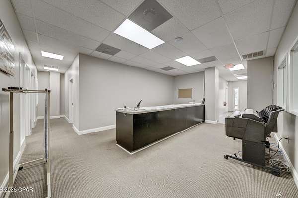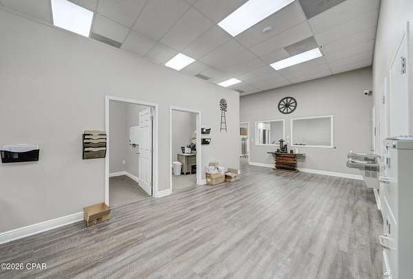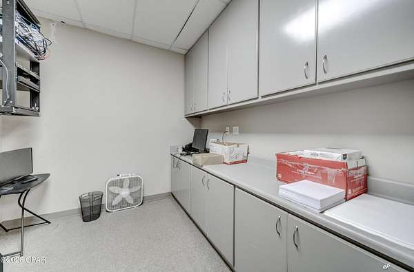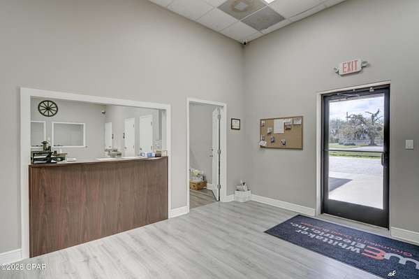 This property is centrally located in Bay County with easy access to Tyndall Parkway, Hwy 98, and Hwy 231. The office space was remodeled and updated in 2022. The vacant land adjacent to the fenced in yard has been cleared, filled and separate driveway installed. The vacant area can be divided and sold back to owner. If this is of interest to buyer please contact listing agent. * Please note that all measurements are approximate, if important to buyer please notify the buyer they will need to verify. Current layout provides 5 individual offices, 2 open work areas, kitchen, storage closet and 2 restrooms, men's and women's.