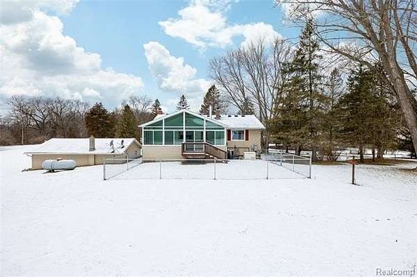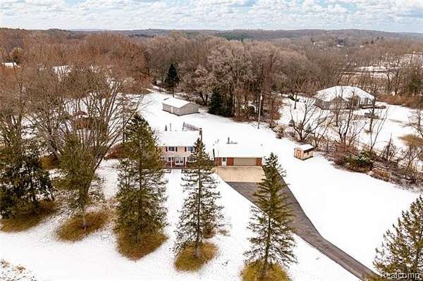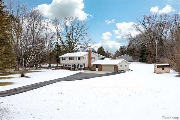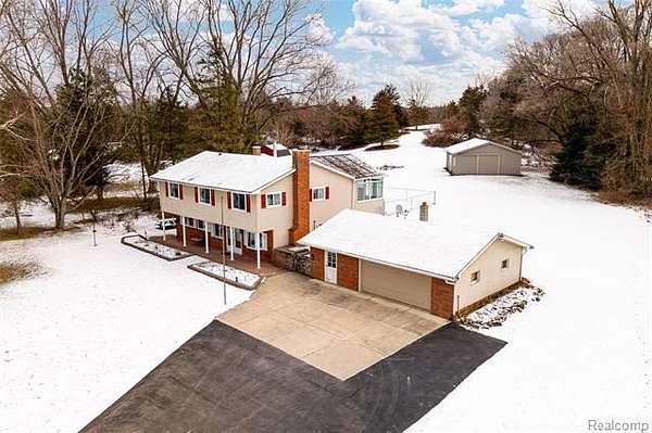 Welcome to this beautiful country estate! Great sized home, pole barn, equipment barn, pond, sunroom, some fenced in yard. This home invokes making memories of adventures exploring the 6.6 acres, laying in the cool grass next to the pond in the summer and sledding down the driveway in the winter! The pole barn was a hobby barn so it has electric heat and cooling. The other barn is an old equipment barn, essentially, with an outside hydrant nearby. The entry level of the home is a great room concept with a gas fireplace at one end. The upstairs has a family/flex/common room with its own woodstove to keep it toasty, 4 bedrooms and another full bath. Through the flex room is a bright, beautiful sunroom heated and cooled independently by a mini-split. A detached, 2 car garage finishes off the estate!
