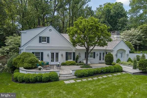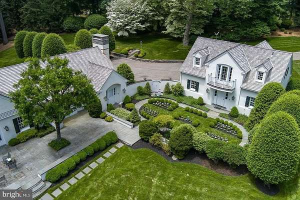 Extraordinary residential family compound in the utmost private location, with a long, elegant tree-lined drive and remarkable grounds of nearly three acres with gorgeous views. Located on one of Villanova's most exclusive and sought after cul-de-sacs, timeless landscape architecture enhances this classic Main Line setting which began with a pedigree from the renowned Philadelphia residential architect, Walter Durham.Enter the front door to the tiled entrance foyer, with 'straight thru' views and abundant natural light. Foyer opens to a gracious transverse center hall, with a traditional colonial floor plan, and flows to the formal living room, dining room and library, all with beautiful, random-width hardwood floors. Foyer flows to the fabulous butler's pantry and wet bar, which open to the magnificent kitchen and great room addition. Enter the white on white island kitchen, which opens fully under a lighted, parabolic archway to the great room with fireplace. Kitchen and great room have double doors out to the flagstone patio and courtyard garden. Kitchen has pretty hardwood floors, double wall ovens, Sub Zero refrigerator, electric cooktop, twin sinks at a double corner kitchen window with astonishing views out over the patio, and green, granite countertops. There is a small kitchen desk with seating with built-in shelving units for printer.Relax in the sun-filled adjacent great room with unique architectural design and wonderful open flow off the kitchen with vaulted ceiling, gas fireplace, flat screen TV with sound system, beautiful millwork, moldings, hardwood floors, views of the private drive and stunning landscaped grounds. It is here where classic luxury is felt and lived but is never showy. Main floor owners' bedroom suite is just off the library and hall, pronounced by the lighted rotunda. This beyond-first-class, ultra-private luxe suite has H/H bathrooms, extensive closet systems, a walk-out door to the raised deck, and hideaway access to the Library and fireplace for true, one-level living at its finest.Just off the entrance hall foyer are the stairs to the second floor landing. Here are three family bedrooms, generous in size and scale. The first bedroom has an en suite full tile bathroom, closet and pretty windows. Bedrooms two and three share a full hall bathroom.The walk out, partially finished lower level is currently in use as a WFH office and sitting area with WTW carpeting. Office connects to the full laundry room and to storage and mechanicals rooms. Mechanicals include a whole house, back -up electrical generator power system. House has twin LP gas tanks, above-ground, for the gas fireplaces.The jewel box apartment over the heated, detached, three car garage is immaculate. Steps up to the landing have kitchenette and dining area, sitting area and full bath, along with French doors out to the Juliet balcony, with sensational views and then the sunny bedroom area, with more pretty windows. Apartment has all first class finishes, cabinetry and appliances, built-ins, hardwood flooring and white carpeting, just adorable. Perfect for au-pair, adult children, newlyweds or in-law suite.