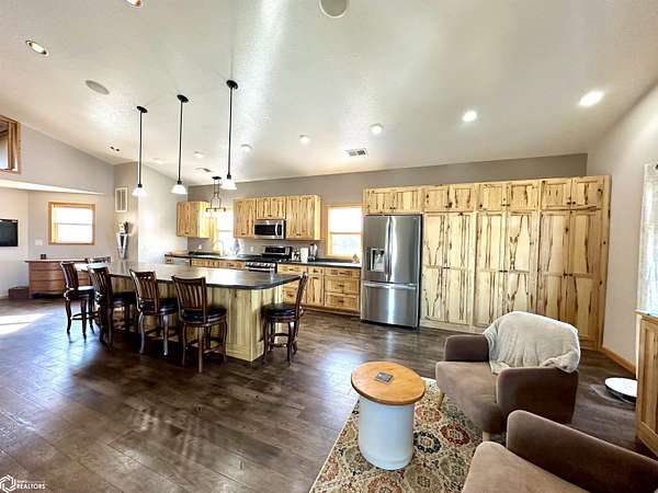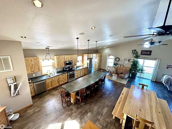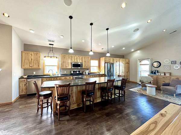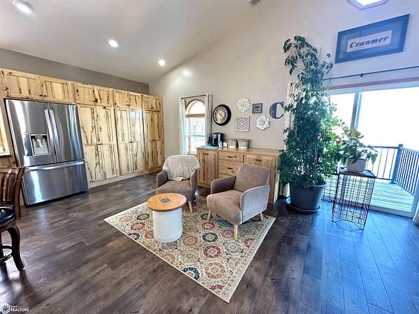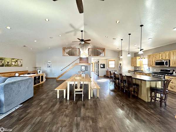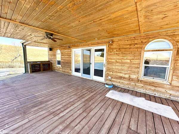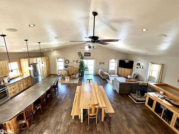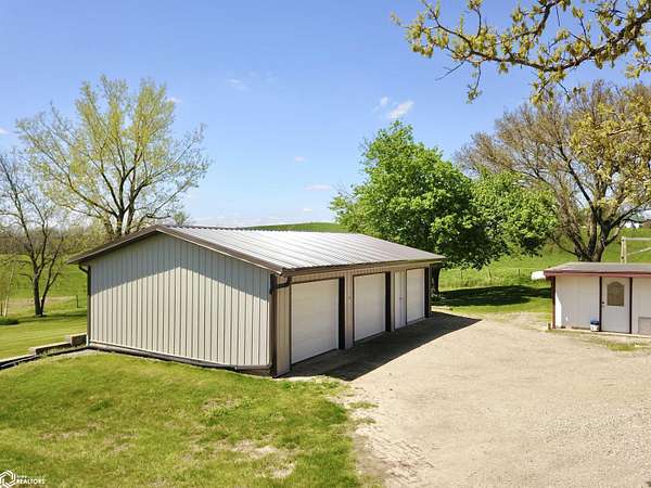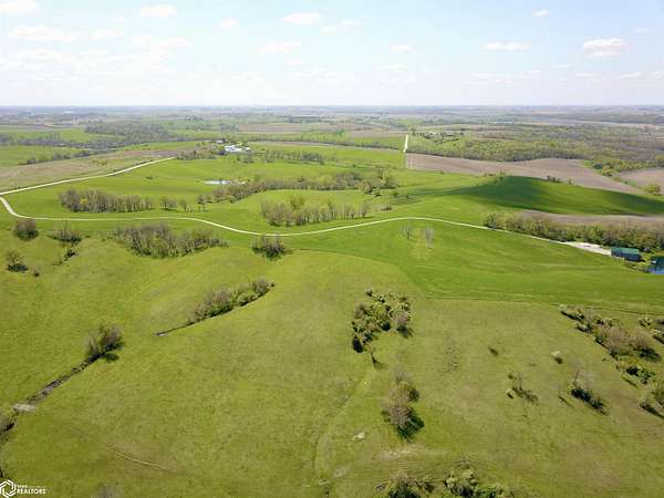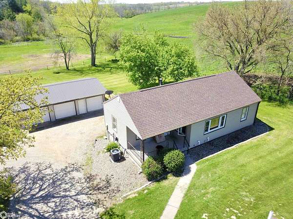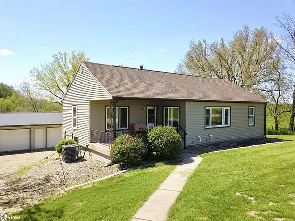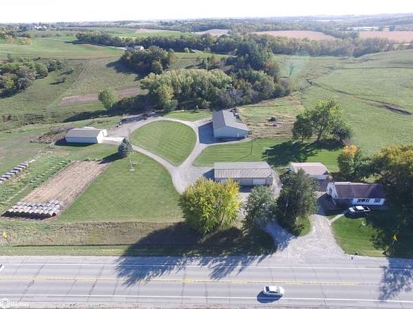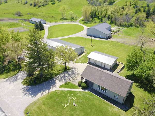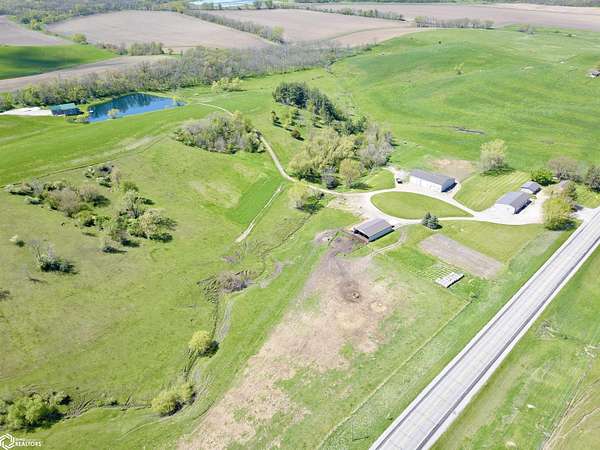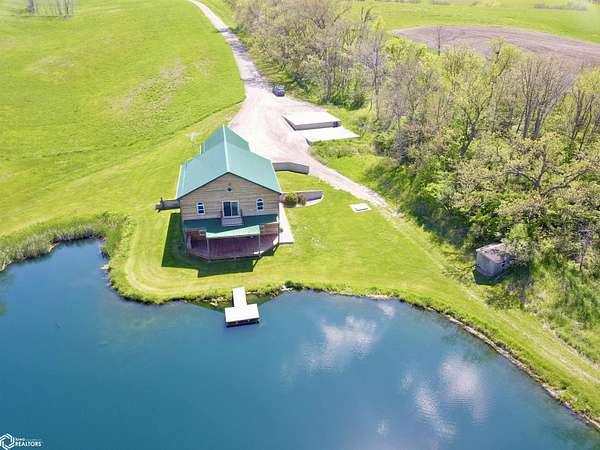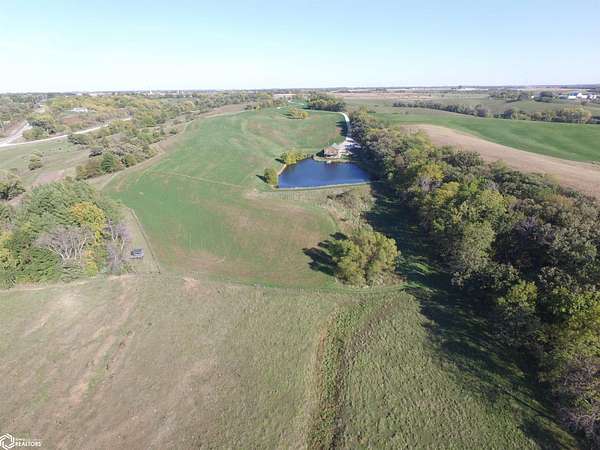Tucked into nearly 80 acres of rolling Iowa hills, just 7 miles west of Grinnell, 3 miles from I-80, 4miles from Rock Creek State Park, this one-of-a-kind property offers beauty, privacy, and convenience. Just across HWY 6 and down the road from Oakland Acres Golf Club, this setting is as peaceful as it is accessible. A handcrafted cabin-style home overlooks a private pond with nearly 1,000 feet of shoreline and a dock perfect for soaking in unforgettable sunsets. The driveway meanders along a scenic hillside ridge through lush alfalfa fields, leading to panoramic views and total seclusion. The land features true rolling hills, pockets of mature trees, ATV trails, and abundant wildlife including deer, turkey, and pheasant. The original farmstead includes a clean, functional walkout ranch with three bedrooms, plus a detached shop, garage, livestock barn, equipment shed, and multiple storage buildings. Several fenced areas support horses, cattle, and sheep, and a creek winds through the pastures, providing a steady water source. The lower 15 acres, bordered by a tributary to Rock Creek for half a mile, also include a quarter mile of frontage along State Highway 6, offering year-round access. With its blend of natural beauty, agricultural use, and ideal location, this is more than a property; it's a rare chance to own a stunning piece of Iowa. Properties like this come available once in a generation. Make the appointment for your guided tour!