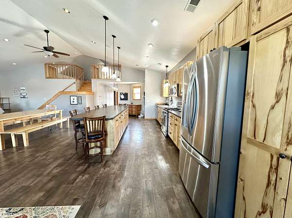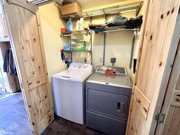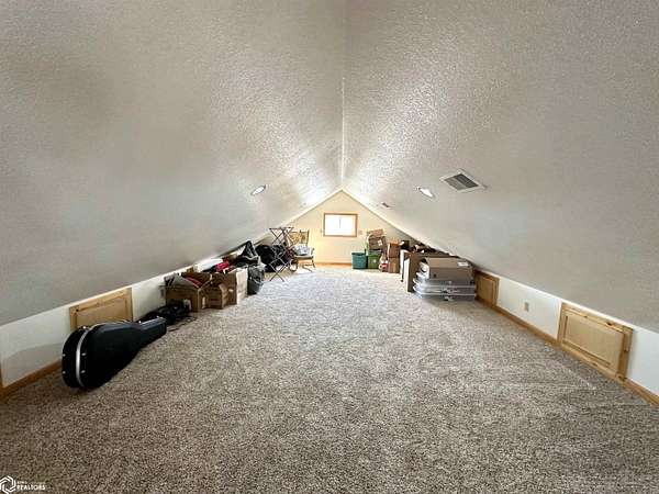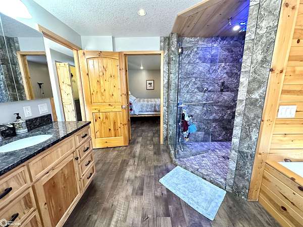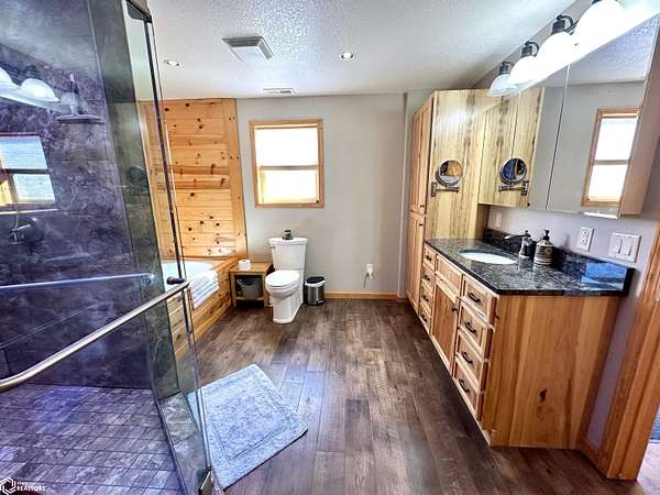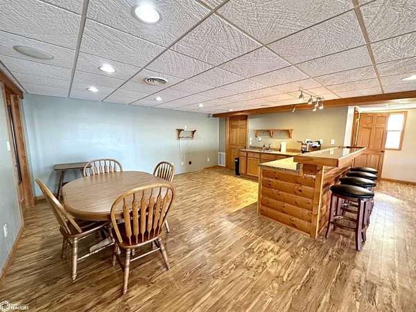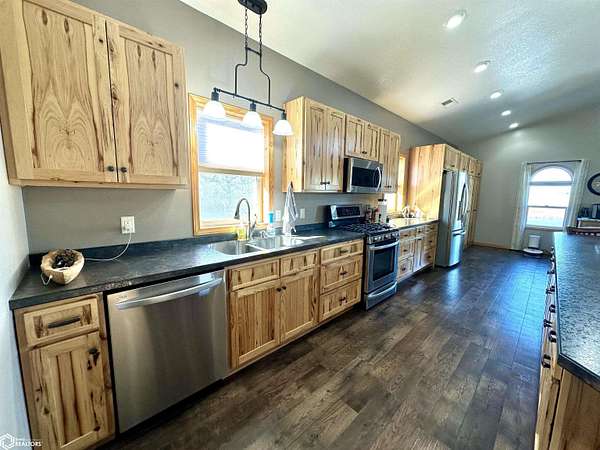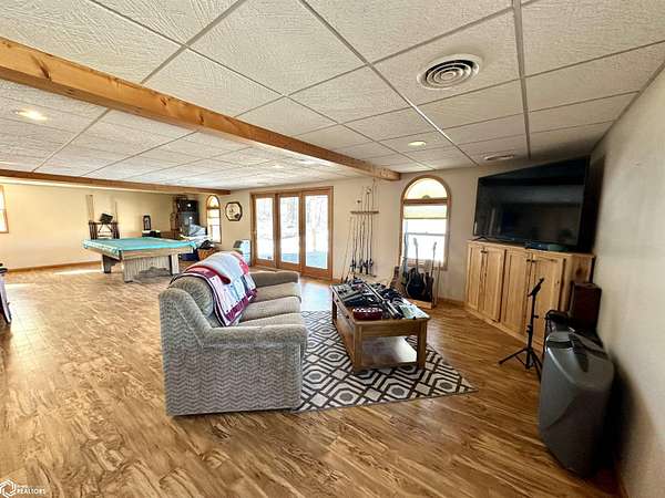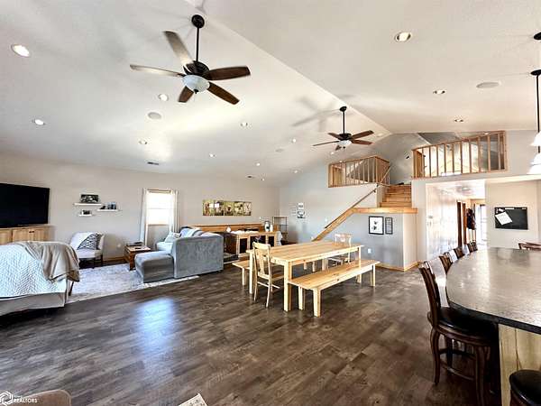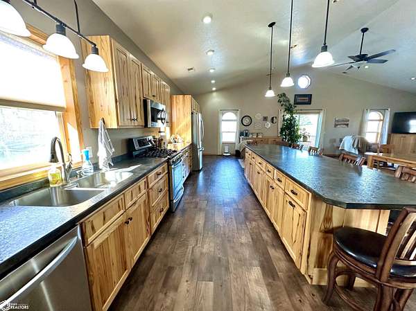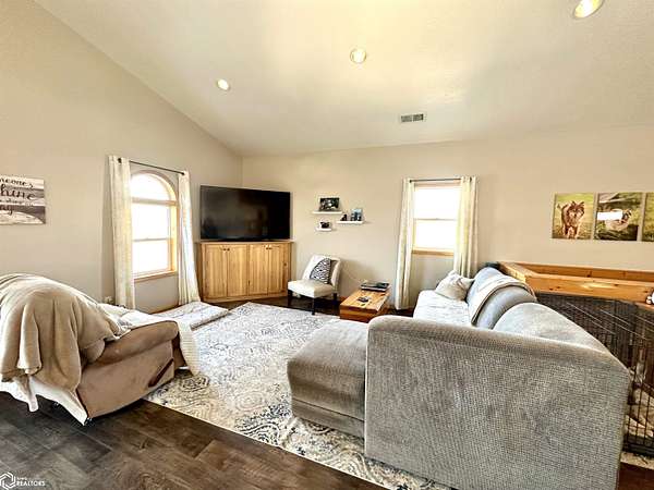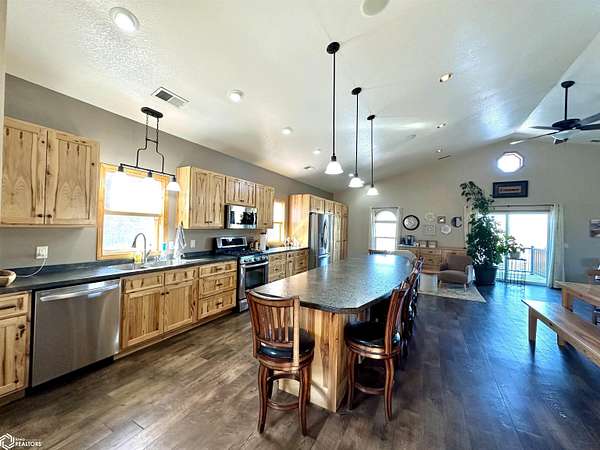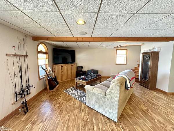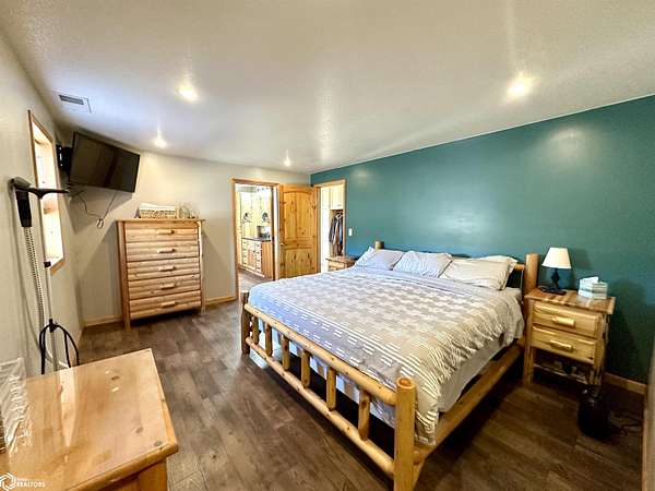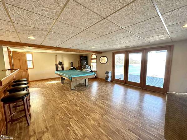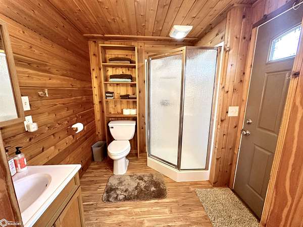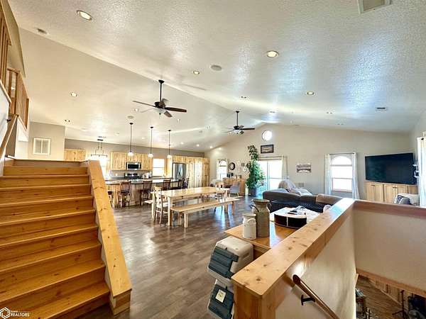 Tucked into nearly 80 acres of rolling Iowa hills, just 7 miles west of Grinnell, 3 miles from I-80, 4miles from Rock Creek State Park, this one-of-a-kind property offers beauty, privacy, and convenience. Just across HWY 6 and down the road from Oakland Acres Golf Club, this setting is as peaceful as it is accessible. A handcrafted cabin-style home overlooks a private pond with nearly 1,000 feet of shoreline and a dock perfect for soaking in unforgettable sunsets. The driveway meanders along a scenic hillside ridge through lush alfalfa fields, leading to panoramic views and total seclusion. The land features true rolling hills, pockets of mature trees, ATV trails, and abundant wildlife including deer, turkey, and pheasant. The original farmstead includes a clean, functional walkout ranch with three bedrooms, plus a detached shop, garage, livestock barn, equipment shed, and multiple storage buildings. Several fenced areas support horses, cattle, and sheep, and a creek winds through the pastures, providing a steady water source. The lower 15 acres, bordered by a tributary to Rock Creek for half a mile, also include a quarter mile of frontage along State Highway 6, offering year-round access. With its blend of natural beauty, agricultural use, and ideal location, this is more than a property; it's a rare chance to own a stunning piece of Iowa. Properties like this come available once in a generation. Make the appointment for your guided tour!