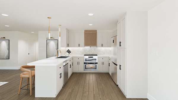 Balanced, welcoming, and timeless, The Willow blends modern design with the warmth of tradition. Its open-concept layout centers around a functional kitchen hub that connects seamlessly to the great room and dining area, making it perfect for everyday living and family gatherings. With intuitive flow and a strong connection to the outdoors, this single-level plan supports a relaxed lifestyle while maintaining architectural sophistication. Style shown is Craftsman Exterior. See photos for additional outdoor styles. NOTES: Price listed is for base price only. Character Rooted in simplicity and grace, The Willow carries the charm of a Modern Farmhouse with clean lines and organic warmth. Vertical siding, modest trim detailing, and covered outdoor spaces create a look that feels both current and familiar. Inside, natural light, soft tones, and thoughtful finishes highlight a sense of calm and connection equally suited for a Riverside setting or a quiet neighborhood street. Specifications Total Finished Living Area: 1,496 sq. ft. Main Level: 1,496 sq. ft. Unfinished Spaces: Covered Stoop: 19 sq. ft. Garage: 397 sq. ft. Patio: 113 sq. ft. Bedrooms: 3 Bathrooms: 2 Garage: Attached two-stall Ceilings: 8 throughout main level Construction Details: 26 exterior and 24 interior walls 12x36 frost-free trench footing with slab-on-grade foundation Wall bracing method: CS-WSP Energy-efficient insulation (R-19 minimum) Engineered LVL headers and roof trusses per manufacturer design Layout Highlights Spacious open-concept living with kitchen, dining, and great room flow Primary suite with walk-in closet and ensuite bath Two secondary bedrooms and full shared bath Central laundry with easy access from bedrooms and garage Covered front stoop and rear patio for indoor-outdoor living Efficient circulation with minimal hallway waste Ideal For Families who value shared spaces and everyday comfort Buyers seeking a single-level layout with timeless appeal Homeowners who want a blend of elegance and practicality