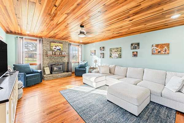 Two words describe this property, ABSOLUTELY AMAZING. You are going to love this southern Kentucky dream farm. This property boasts a stunning 4 bedroom home with two levels, a concrete patio, 40' x 60' shop with 14 ft overhead doors, three bays, concrete and wired, a livestock barn, all situated on 19.13+ acres that is fenced and cross fenced. Step inside this home and you're going to fall in love with the beautiful hardwood floors, tongue and groove ceilings in the family room, the original farm house chestnut wood trim, tons of custom cabinetry in the kitchen, stacked stone fireplace, 4 bedrooms each with huge walk-in closets, tile flooring in the bathrooms, a primary suite that is amazing with an air tub. The laundry is just off the primary with a pass through door into the pantry room that boasts floor to ceiling cabinetry with tons of storage, plus an office/play area and a sunroom/mudroom with lockers and two upstairs storage/attic rooms. Recent upgrades include a new standing seam metal roof in 2023, tankless water heater, oversized pantry room, Total Encapsulation of the crawl space in 2023 and tons of fixture upgrades. If that's not enough, check out this property. This sprawling acreage has a 40'x60' shop that serves as a detached garage with blacktop drives, 14' overheard doors to accommodate a camper and tons of space for your grown up toys. The owner currently has beef cattle on the property with waterers, fencing and gates in place to manage several head plus a stock barn. This property is nestled just outside of Scottsville, KY just 15 minutes to I-65 and the Parkway in Bowling Green, KY and just one hour north of Nashville, TN. A short drive of ten minutes up the road is Barren River Lake and the Barren River Lake State Park. Come and see this property, you're going to love the tranquility of the country life and the experience of all that South Central Kentucky has to offer. Not included with the sale are the following: outside playset and hot tub.