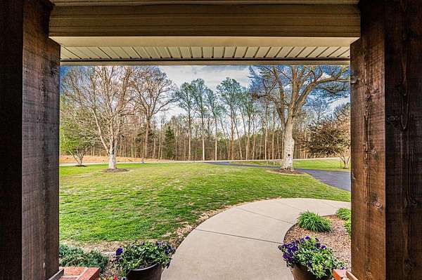 - Barn, Concrete Walks, Covered Front Porch, Fence, Garden Area, Landscaping, Line Fence, Mature Trees, Outdoor Lighting, Sun Room