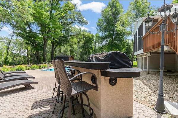 Step outside to your backyard oasis -- a heated in-ground pool, hot tub, patio, built-in grill, and firepit, -- perfect for entertaining or relaxing.