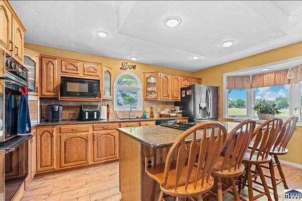 Charming Ranch-Style home on nearly 6 acres with Oversized Pole Barn!!! Welcome to this beautifully maintained home offering 3 bedrooms and 2 full bathrooms, perfectly situated on almost 6 acres of peaceful countryside. Enjoy an abundance of natural sunlight throughout the home, highlighting a spacious kitchen featuring double ovens, an electric range top on an oversized island, and a large walk-in pantry--ideal for cooking and entertaining. The formal living room offers a cozy fireplace and a convenient mini serving station. Equipped with cabinets and countertop, perfect for snacks or drinks during gatherings. A 2-car attached garage provides everyday convenience. Outdoors, you'll find a 30x60 pole barn with 5 car bays--one of which is heated and cooled, offering the perfect space for a workshop, hobby area, or year-round storage. Don't miss this unique opportunity to own a versatile property with both comfort and functionality!!! Call to schedule a showing today!!!
