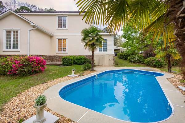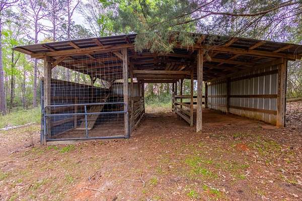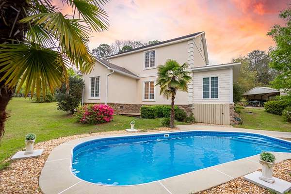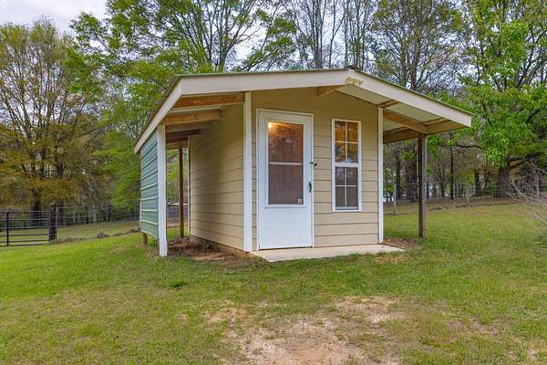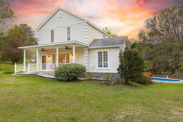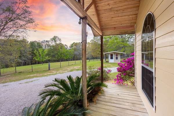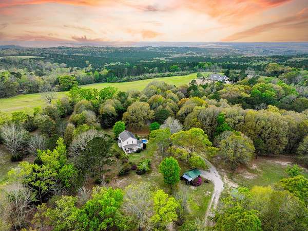 Welcome to a property that truly feels like home the moment you turn down the drive. As you enter, a winding gravel driveway slowly reveals the beauty of this 18.89± acre homestead, guiding you through open pasture, scattered hardwoods, and a setting that immediately feels peaceful, private, and full of possibility. This is the kind of place where you can slow down, spread out, and build the lifestyle you've been dreaming about. Designed with both functionality and charm in mind, the land is thoughtfully laid out with multiple fenced sections, making it ideal for horses, donkeys, goats, or any animals your heart desires. The pasture area is already in place, complete with a barn perfectly suited for horse stables and a chicken coop ready for your own farm-fresh eggs. The property continues to unfold as you explore it, mature oak trees line winding trails that lead you to a tucked-away pond, where the land gently falls off into a scenic hardwood backdrop. It's the kind of setting that invites you to spend evenings outdoors, whether you're walking the trails, feeding the bream that gather along the pond's edge, or simply enjoying the quiet. And for those who love the outdoors, don't let the size fool you, this property is loaded with deer. At the heart of it all sits a beautifully maintained 2 bedroom, 2 bathroom home offering 1,906 square feet of comfortable living space. Built in 2001 and kept in excellent condition, the home features an open floor plan with a warm and inviting living area anchored by a corner gas fireplace. The kitchen offers custom wood cabinetry, granite countertops, and updated appliances, creating a space that is both functional and welcoming. What truly sets this home apart is its flexibility. In addition to the two bedrooms, the home features a dedicated office filled with natural light that could easily be converted into a third bedroom with the addition of a closet. Upstairs, the primary suite offers even more opportunity, with a loft/sitting area that could be reimagined as additional sleeping space, a bunk room, or even a fourth bedroom setup depending on your needs. Whether you're looking for extra space for family, guests, or future value, this home offers options that are hard to find. Downstairs also includes a guest bedroom and bath for added privacy, while the upstairs primary suite provides a quiet retreat with a sitting area, spacious walk-in closet, and well-appointed bath. There is also a floored attic space offering plenty of additional storage. Step outside and you'll find even more to love. A beautiful pool and fully fenced yard create the perfect space for relaxing or entertaining, while the front porch offers peaceful views overlooking blooming azaleas and the surrounding pasture. Just beyond the yard, a powered and plumbed he/she shed opens the door for endless possibilities, whether it's a workshop, guest space, reading nook, or playhouse. Nearby, a firepit area sets the stage for gathering with family and friends under the open sky. Additional features include multiple water spigots throughout the property, a well-designed pump house with a deep well capable of supplementing the pond, and a layout that has clearly been designed with both usability and enjoyment in mind. This is more than just a home, it's a lifestyle. A place where land, privacy, and comfort come together to create something special, offering the feel of a larger home with the flexibility to grow into even more. All tucked away in a quiet setting, yet still conveniently located not too far from town. If you've been looking for a property that offers both function and feeling, this is it.