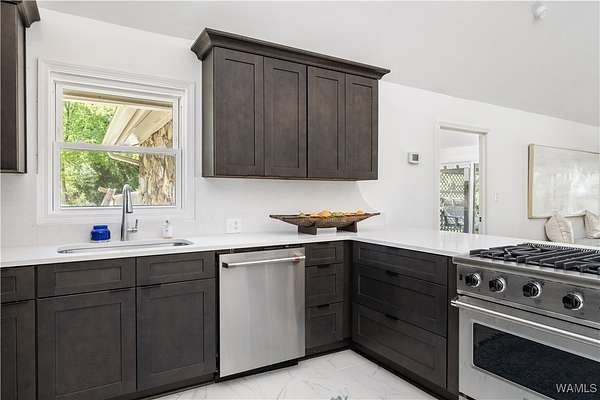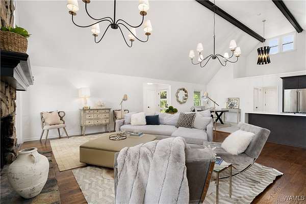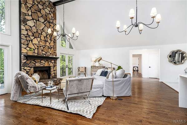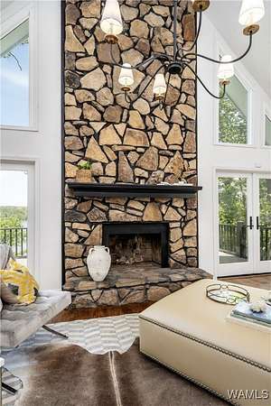 Fully Renovated with Stunning Lake Tuscaloosa Views! This beautifully updated 4-bedroom, 2.5-bath home sits on approximately 3 +/- acres in the highly sought-after Northside school zone-offering the perfect blend of privacy and convenience just minutes from town. A gorgeous floor-to-ceiling stone gas fireplace greets you as you walk in, setting the tone for the warm, inviting interior. Soak in panoramic lake views from the living room and every bedroom. Inside, you'll find rich hardwood flooring and stylish modern finishes throughout. Outside features include a 2-stall barn ideal for horses or extra storage, plus an additional storage building within a fenced backyard. A rare combination of space, views, and location!