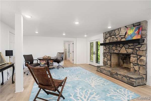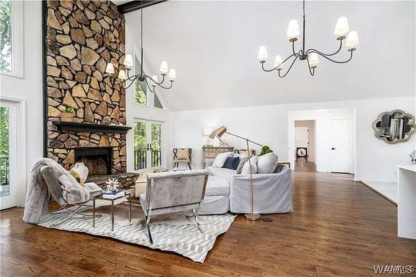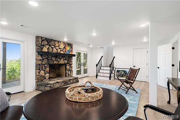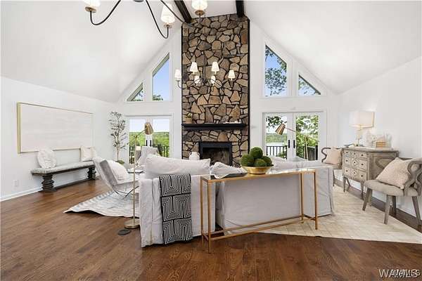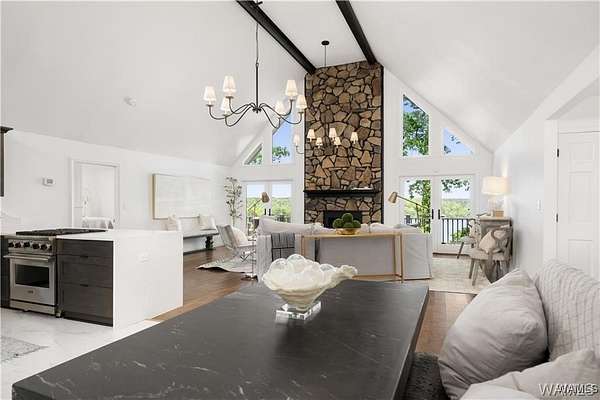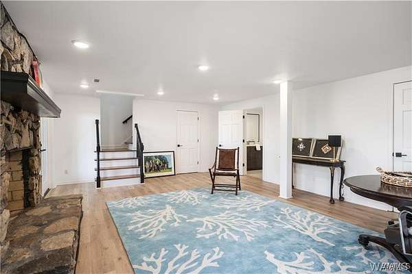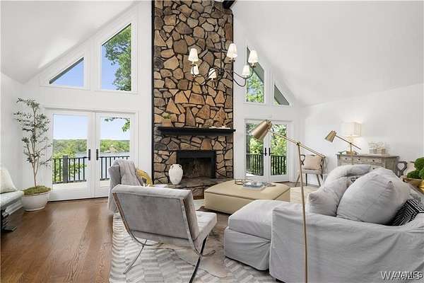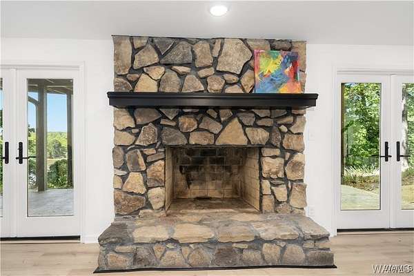 Fully Renovated with Stunning Lake Tuscaloosa Views! This beautifully updated 4-bedroom, 2.5-bath home sits on approximately 3 +/- acres in the highly sought-after Northside school zone-offering the perfect blend of privacy and convenience just minutes from town. A gorgeous floor-to-ceiling stone gas fireplace greets you as you walk in, setting the tone for the warm, inviting interior. Soak in panoramic lake views from the living room and every bedroom. Inside, you'll find rich hardwood flooring and stylish modern finishes throughout. Outside features include a 2-stall barn ideal for horses or extra storage, plus an additional storage building within a fenced backyard. A rare combination of space, views, and location!