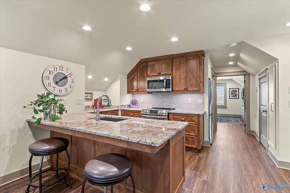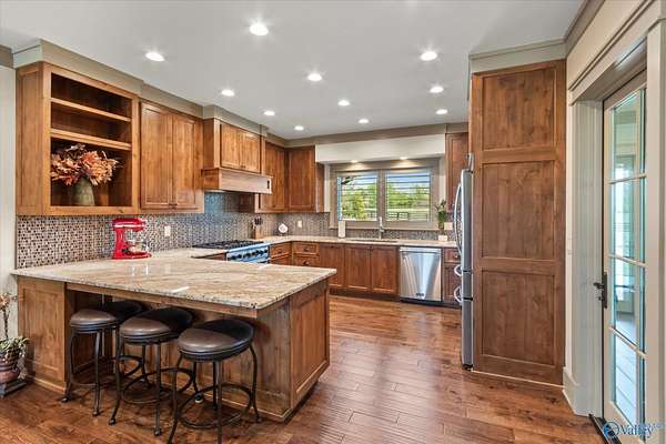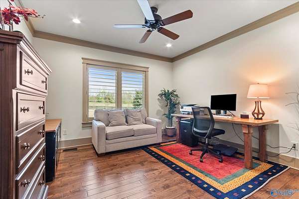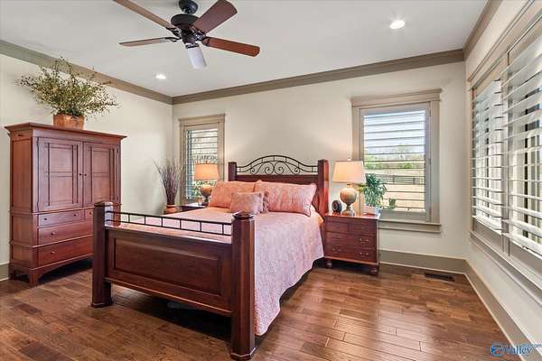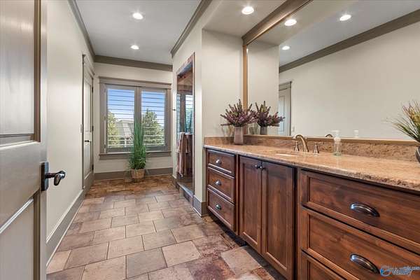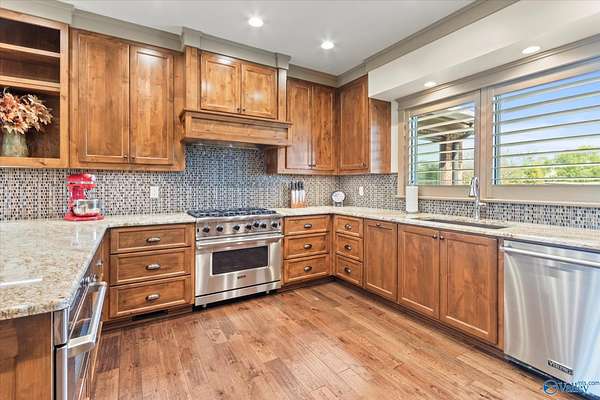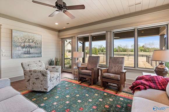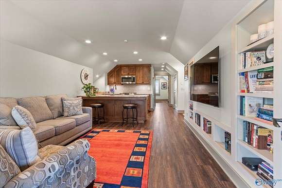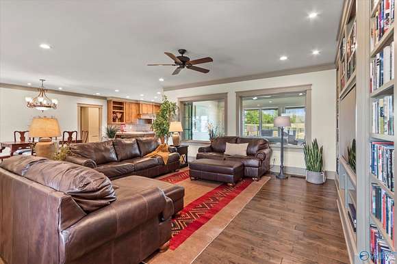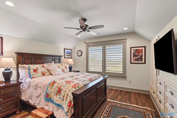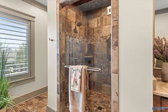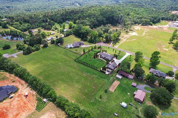 Quality & detail describes this 6 acre estate located in the Lake Guntersville area. Every aspect of this property has been meticulously designed & constructed & includes the following: Full brick one level residence w/over 2800SF of living area, a dual heated & cooled motor home garage w/full hook up's & w/apartment & office space, 2 stand by generators, wood & tiled floors, tiled showers, automatic shades, interior wood shutters, storm room, solarium, gourmet kitchen w/ Viking stove, custom closets & pantry, foam insulation, immaculate landscaping w/ a 5 acre pecan orchard fenced & crossed fenced.