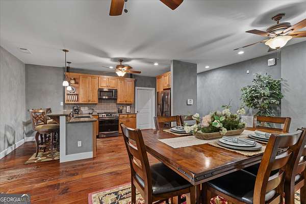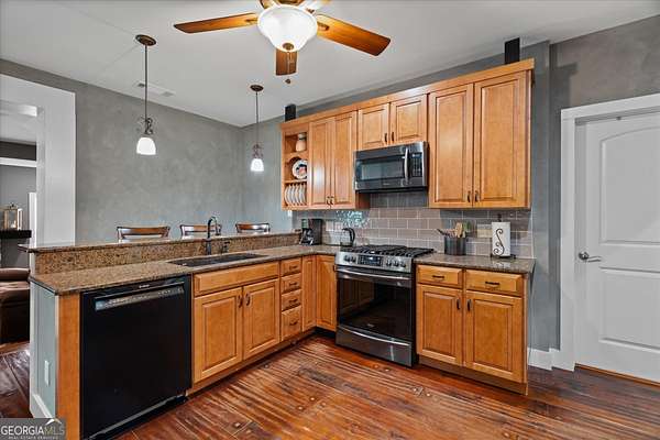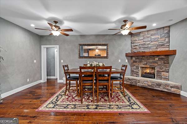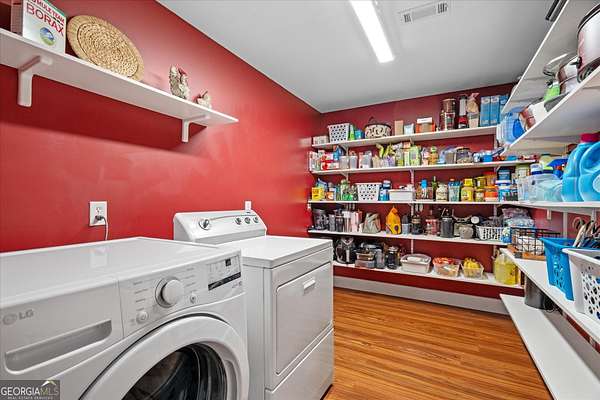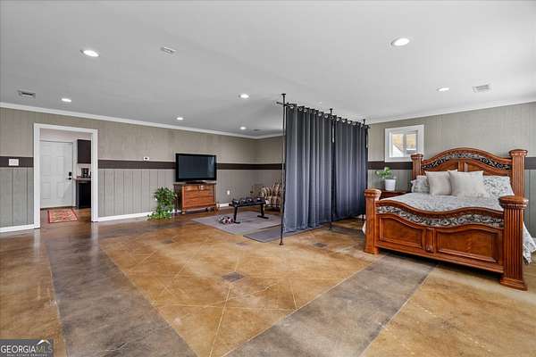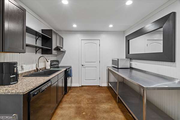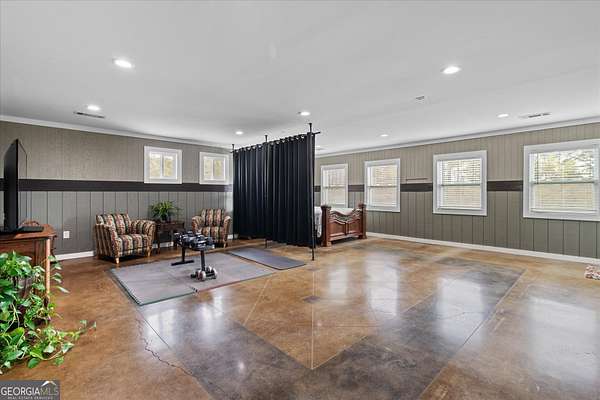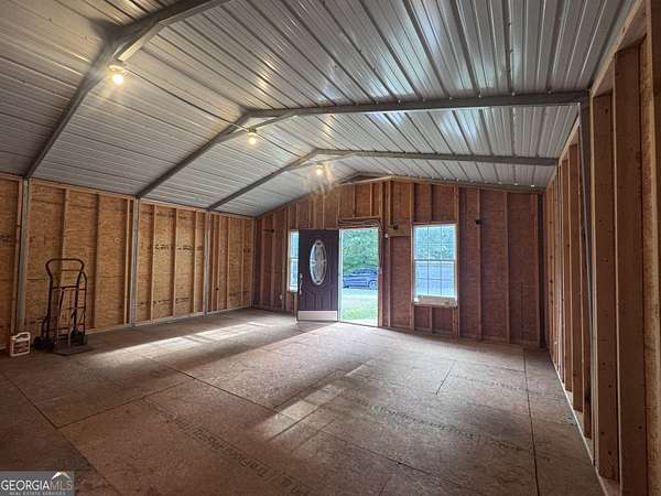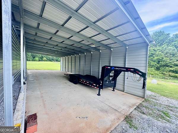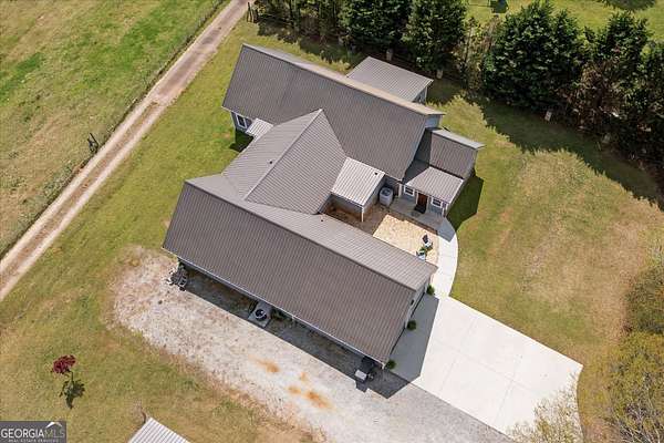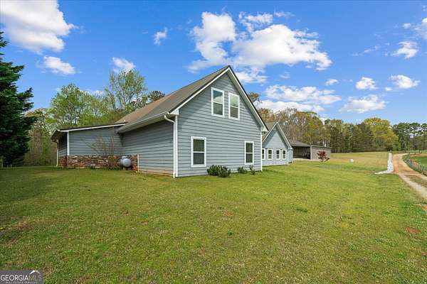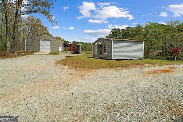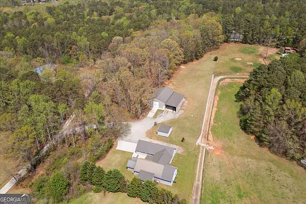 Welcome to a Truly Versatile and Secluded Estate Offering Boundless Opportunities! Nestled on 4.64 private acres at the end of a peaceful dead-end road, this remarkable property invites you to create the lifestyle you've always envisioned. Whether you're seeking a haven for multi-generational living, a home-based business, hobby farming, or simply a retreat to wide-open spaces, this estate delivers unmatched flexibility, privacy, and functionality. At the heart of this property is a 40x60 fully insulated, climate-controlled workshop - a dream come true for professionals, hobbyists, or anyone needing substantial workspace and storage. The workshop is thoughtfully outfitted with spray foam insulation, HVAC, concrete floors, a 12'x14' commercial-grade garage door, 200-amp service, air compressor drops, electrical outlets every 10 feet, and a water connection. Connected to the workshop is a 24x60 covered concrete garage with power and LED lighting, plus an additional 22x21 garage at the rear. A matching 21x22 storage building offers even more potential - perfect for tools, equipment, or a creative studio space. Inside the 3,337 sq. ft. home, you'll find two full living quarters, each with its own kitchen and private entrance - ideal for in-laws, guests, or rental income. The main living area features an open-concept design with a sleek modern fireplace, custom kitchen cabinetry, granite countertops, and gleaming hardwood floors. The primary suite provides a peaceful retreat, complete with a large walk-in closet, jacuzzi tub, separate shower, and private water closet. This property is a rare gem, blending rural tranquility with modern comforts and convenient access to Carrollton, Chattahoochee Hills, Downtown Atlanta, and Hartsfield-Jackson Airport. The possibilities are endless - don't miss the chance to make this unique estate your own!