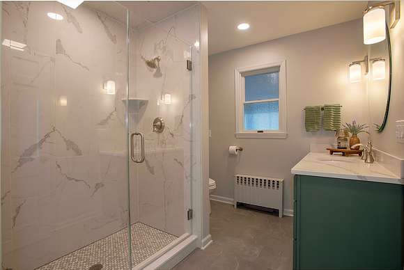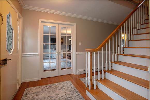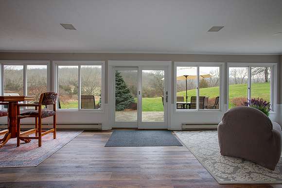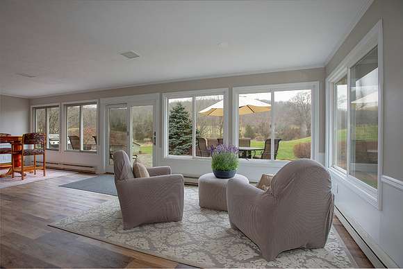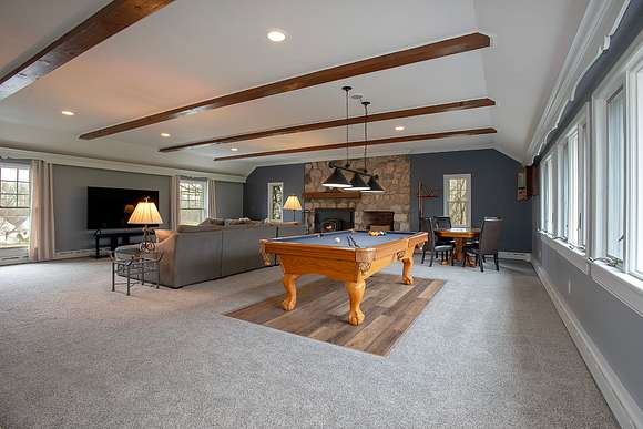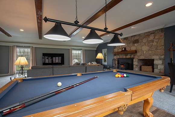 This 6 bedroom home is loaded with the character and charm of a circa 1840 farm house with all the modern amenities. The 3.4 acre estate features an amazing recreational swimming pond with waterfalls, granite fieldstone boulders, night lights, koi, landscaping and a pond house.The exterior of the home is professionally landscaped with stunning paver patios and walkways. Enter through the vintage, iron grate door to the main living level. The heart of this expansive home is the great room with beamed ceilings, pool table, stone fireplace and plenty of windows to enjoy the view. The sitting room overlooks a 3 season porch that boasts new flooring and screened windows.The main bath has been tastefully renovated, Built-in wall wardrobes line the hallway leading to the country kitchen with stained glass accent window, brick fireplace and maple cabinetry. The formal dining room and office showcase the beautiful hardwood flooring and chair rails. The oak staircase leads to 4 good sized bedrooms with accent walls and picture windows. The primary bath has been elegantly updated with a stunning walk-in shower and custom framed double vanity. The primary bedroom offers a full bath and classic wall wardrobes. The 3rd floor features 2 additional bedrooms and bathroom. The walk out basement level offers a gym and a massive rec room roughed out and ready to make your own. The oversized 2 car garage houses the Buderus heating system. Home is very deceiving 5900 sq ft and additional 1900 sq ft in basement. Enjoy nearby Vernon ski slopes, Stokes state forest & High Point State Park. All this just 50 miles from NYC.