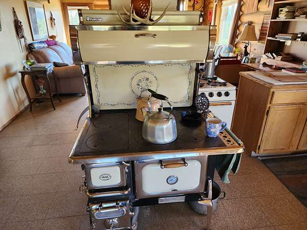 A Solar and battery system powers the Main house 40x35. There is a refurbished stove that is used for cooking. There is one bedroom downstairs and one bedroom upstairs, with the bathroom located on the main floor--approximately 1300 sqft.