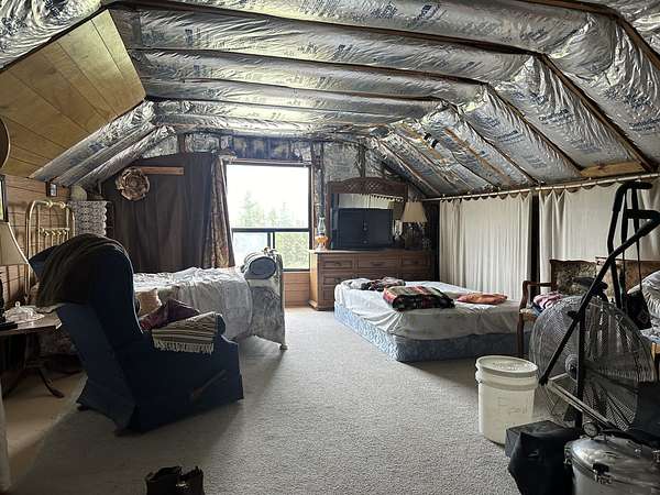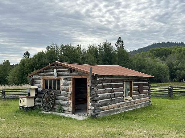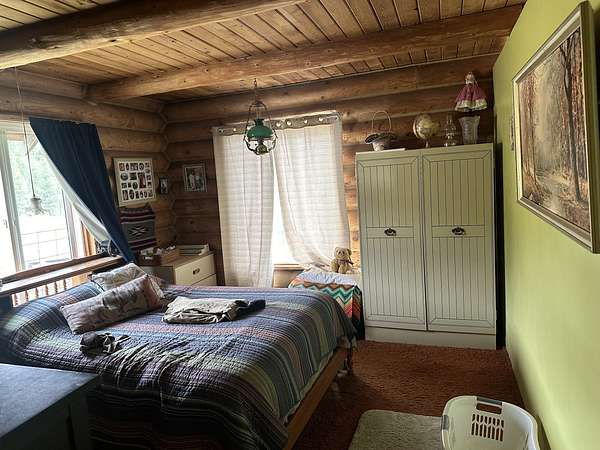There are also two homesteader cabins, one of which is nicely finished & used as an extra bedroom, the other one is not finished but could be easily completed and put to use. They are both approximately 450 sqft, 25x18