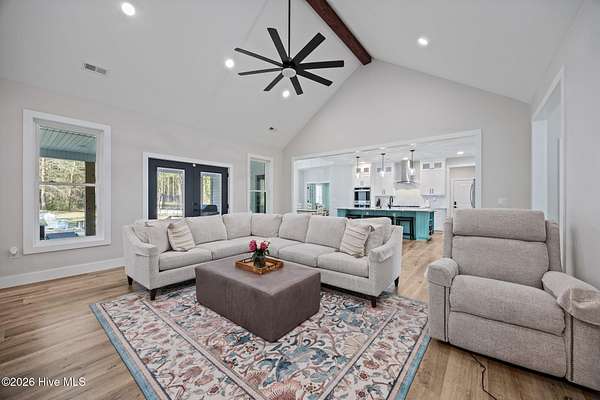 Where space meets serenity, and luxury greets you at the door. Welcome to an extraordinary custom home in the coveted Riverside Plantations, where nearly 4,000 sq ft of refined living unfolds across more than an acre of pristine land. Step inside and experience a home designed for those who appreciate scale and sophistication. Soaring spaces, an open and fluid floorplan, and rooms that feel both grand and inviting set the tone. You'll find three expansive bedrooms, a dedicated office or dining room, a flexible game room on the lower level, and a bonus retreat perched above the three-car garage equipped with its own little mini fridge. On this level you will also find a spacious walk-in attic that is climate controlled. The heart of the home is a showstopper -- an elongated kitchen island that commands attention and invites conversation. Whether hosting intimate gatherings or lively celebrations, this space was crafted for unforgettable moments. When the day winds down, escape to a primary suite worthy of a luxury resort. Indulge in a stunning walk-through shower (no doors, no fuss), a serene soaking tub, and a grand closet that elevates everyday living. For water lovers, neighborhood access is just around the corner, offering the perfect blend of tranquility and adventure. And with a quiet, convenient commute to Swansboro, Emerald Isle, and local dining, the location is as exceptional as the home itself. This is more than a residence -- it's a lifestyle. Schedule your private showing and experience the luxury for yourself.