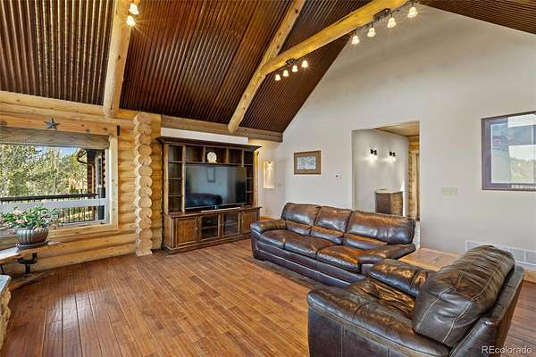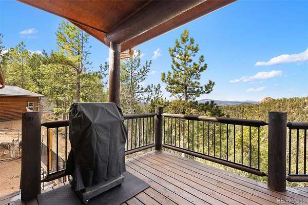 Charming Custom Built Log Home with Sweeping Mountain Views Discover the beauty of Colorado living in this handcrafted 2- bedroom, 2-bath log home, nestled on 3.75 acres of pristine land with breathtaking 360º vistas, including Sentinel Point at Iconic Pikes Peak. This retreat blends rustic charm with modern comfort, featuring; engineered hardwood floors, leathered granite countertops, beautifully crafted custom-built cabinetry, double ovens, with additional wine cooler and separate freezer built into the cabinetry. The Dacor 6 burner gas range adorns the 6’ by 52” Island and makes the kitchen a Chef’s dream perfect for entertaining or just cooking that gourmet meal. The open concept Kitchen, Dining and Great Room, filled with natural light and the floor to ceiling stone fireplace showcases the warmth of authentic log construction. Step outside to enjoy the expansive deck and explore your private acreage, embraced by nature and overlooking unobstructed majestic mountain landscapes including views of the Collegiate and Sangre de Cristo ranges. The oversized 24x24 attached double car garage and a 30x24 detached, insulated, log-sided workshop offers versatile space for hobbies, storage, or creative pursuits. Whether you're seeking a full-time residence, a vacation escape, or a peaceful retreat, this one-of-a-kind property offers craftsmanship, comfort, and a deep connection to the land.