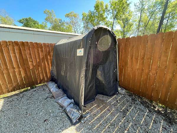One of the standout features is the large hinged gate system, built to easily accommodate RVs, trailers, and material trucks. The Brackenridge-side entrance spans 18 feet wide, consisting of four 4.5-foot hinged panels equipped with durable wheels that allow the gates to fold inward smoothly.