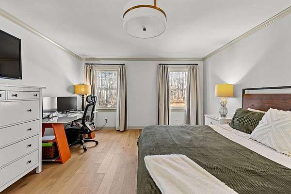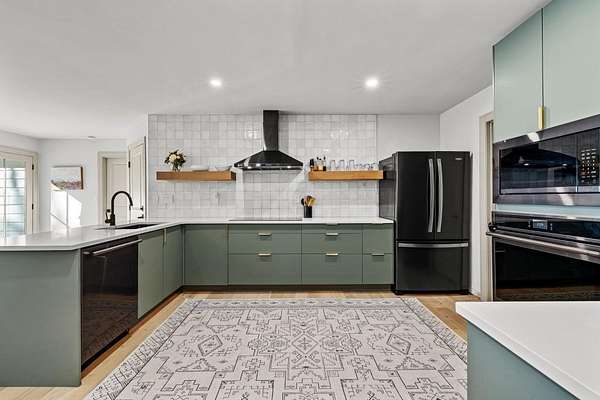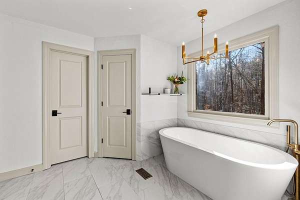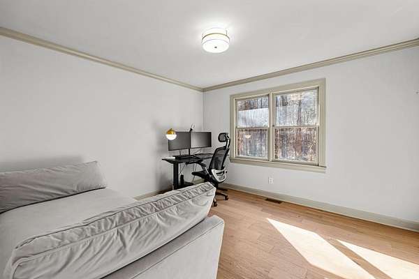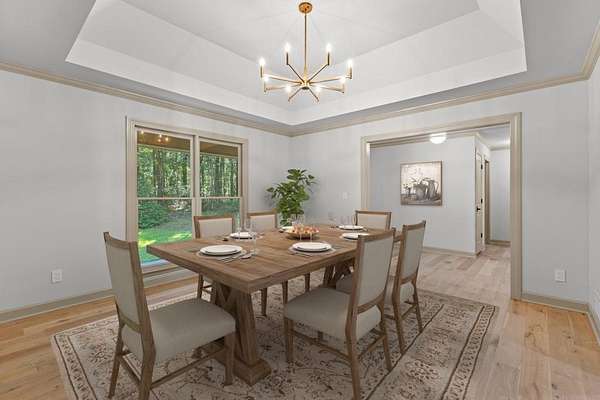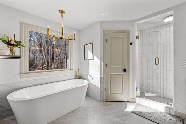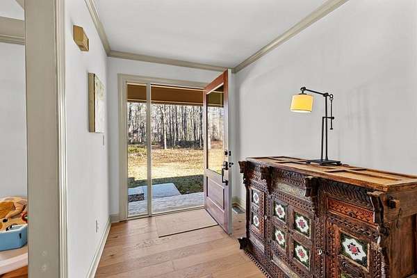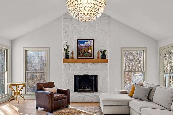 Refreshed and move-in ready, this beautifully updated ranch is designed for effortless living and easy entertaining. Step inside to a light-filled family room highlighted by soaring vaulted ceilings and a striking stone masonry fireplace, perfectly framed by peaceful woodland views. New wood flooring flows throughout the home, adding warmth and continuity to the open layout. The open-concept kitchen is a true showstopper, featuring brand-new appliances, sleek quartz countertops, an induction cooktop, wall oven and microwave, dishwasher, and dramatic backsplash tile extending to the ceiling- ideal for both everyday meals and hosting. The spacious owner's suite offers a private retreat with double closets, a relaxing soaking tub, and a step-in shower. Two generously sized guest bedrooms are thoughtfully positioned on the opposite side of the home and share a full bath with tub-shower combination. Step out onto the back deck to enjoy serene wooded privacy. Major upgrades include a new HVAC system for year-round comfort, new water heater, and a new roof on both the main house and shed. Conveniently located just minutes from the Serenbe community's restaurants, shops, and events, and zoned for Brooks, Madras, and Northgate schools, this home offers the perfect blend of tranquility, style, and location!