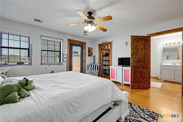 Modern ranch living on 10 acres in the heart of the Hill Country. Located just minutes from the town center of Bertram and a short drive to Liberty Hill and Georgetown, this property offers rural privacy with access to everyday conveniences. Commute routes to Austin and surrounding employers are easily reached via Highway 29 and 183, giving you space at home without feeling remote. The 3 bedroom, 3 full bath home offers approximately 2,700 sq. ft. of well-planned living. High ceilings, comfortable gathering spaces, and windows that frame the surrounding land create a light and open feel. Each bedroom has its own full bath, supporting privacy for household members or guests. The 10 acre property is fenced and cross-fenced, making it functional for livestock, horses, or hobby agriculture. An active agriculture tax exemption is in place, offering notable annual savings. Open pasture and established boundaries provide flexibility whether your plans include grazing animals, gardening, recreation, or future improvements. The land feels peaceful and usable, with a sense of space that supports both work and relaxation. Nearby, you'll find groceries, dining, schools, parks, and community amenities in Liberty Hill and Georgetown, along with access to the broader Austin metro. The surrounding area is known for its small-town atmosphere, local wineries, and the natural beauty of the Hill Country. This property offers a practical, grounded way of living with room to grow and the convenience of town within easy reach.