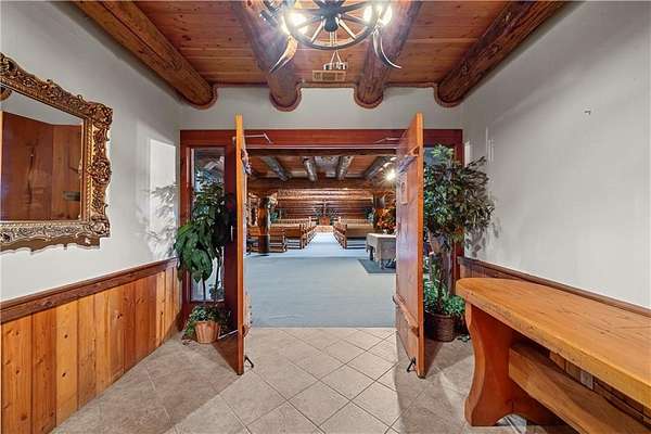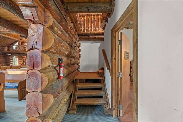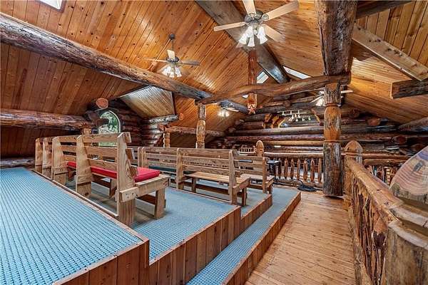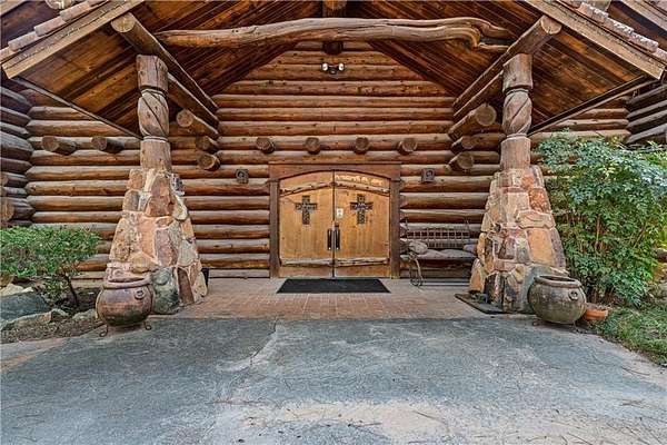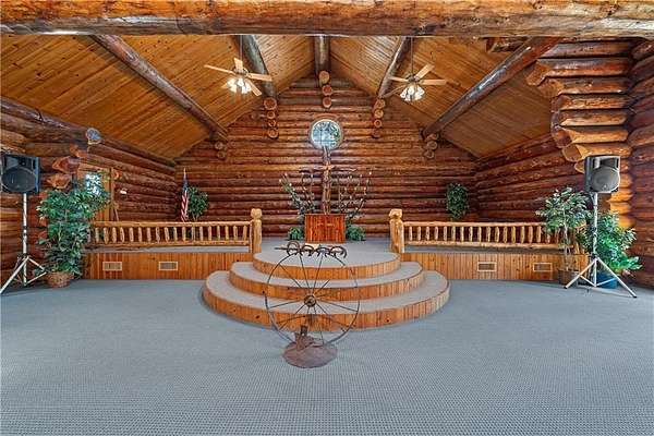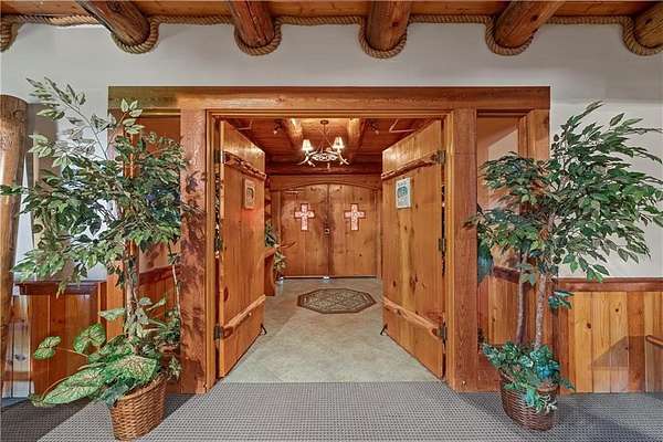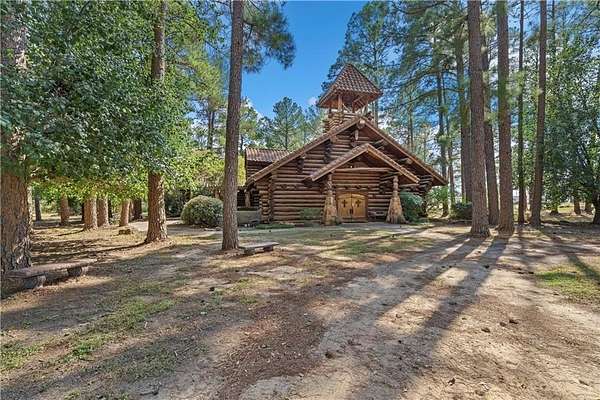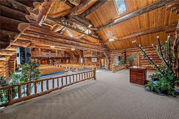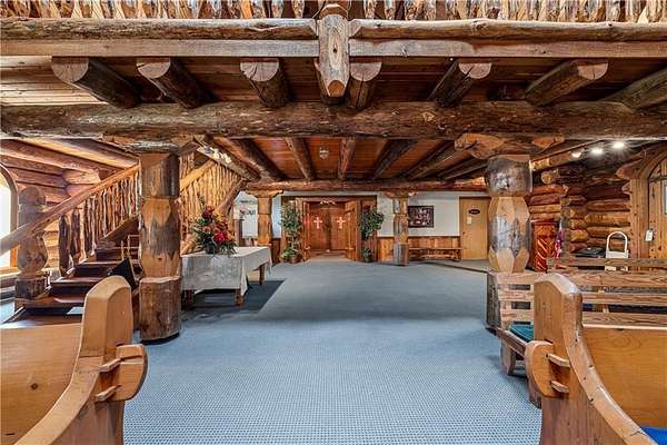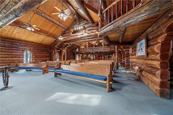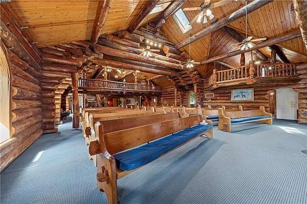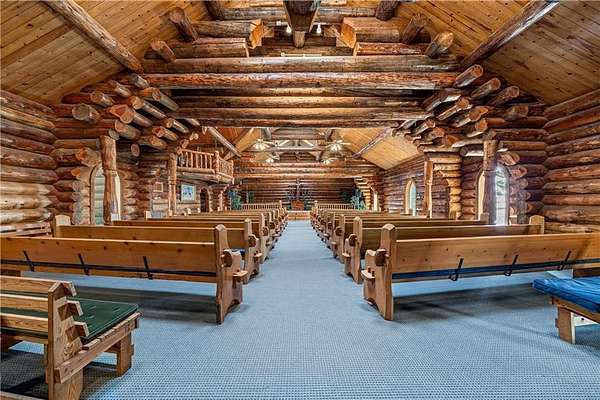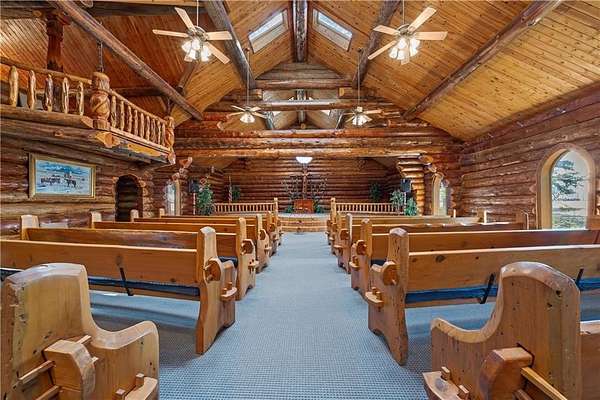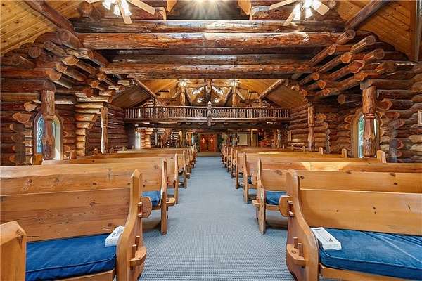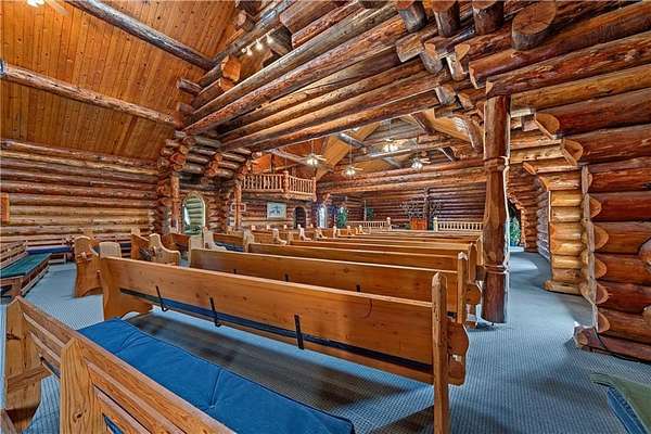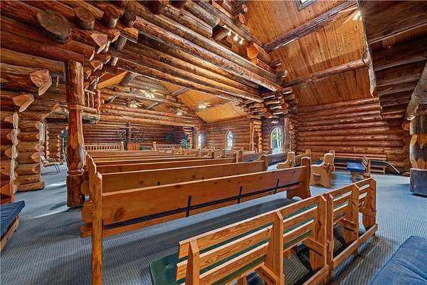 Step into a sanctuary like no other! Nestled among towering pine trees, this scribed log cabin church offers a peaceful and spiritual retreat in nature's embrace. Handcrafted with precision, the structure features beautifully scribed logs that showcase the craftsmanship and rustic elegance of the cabin. Large windows allow natural light to pour in, casting a warm glow on the interior's vaulted wood ceilings and exposed beams. Outside the church is surrounded by a lush canopy of pine trees, providing shade, tranquility, and the scent of fresh pine in the air. Ideal for weddings, special ceremonies or a quiet reflection, this log cabin church invites you to experience craftsmanship like no other. A timeless blend of nature and architecture, this church is perfect for those seeking a sacred space immersed in the beauty of the pines.