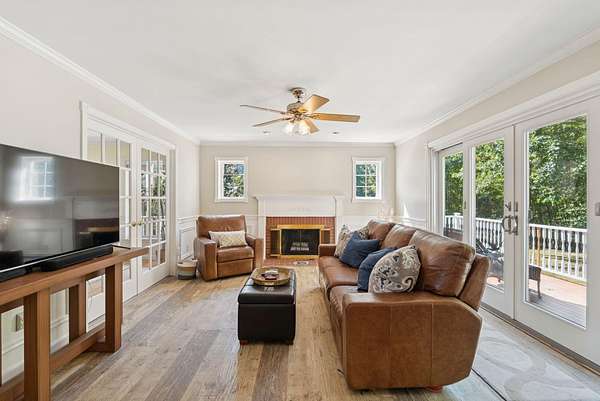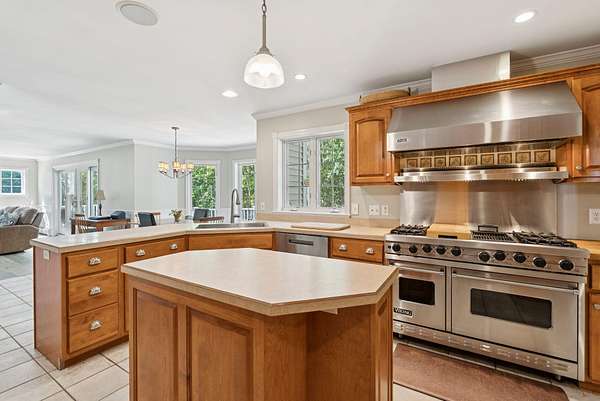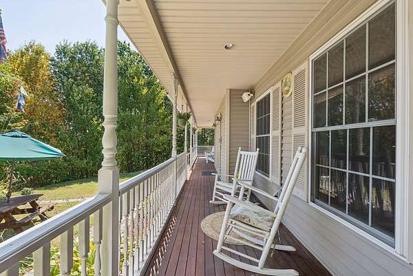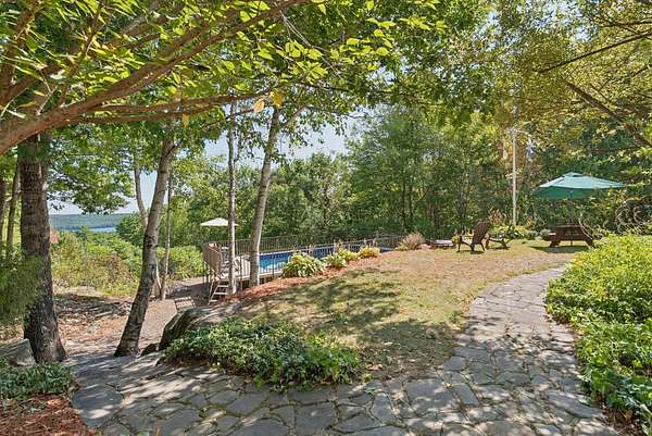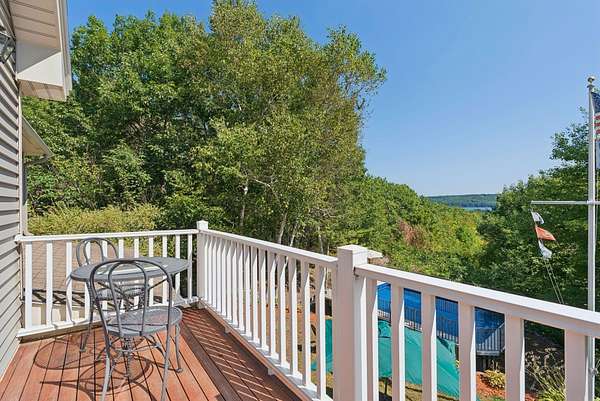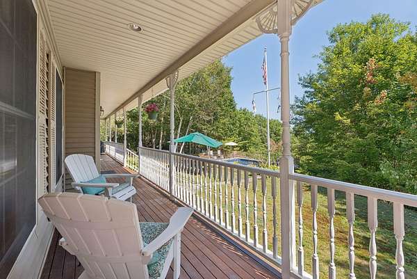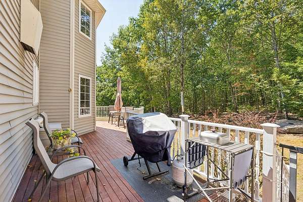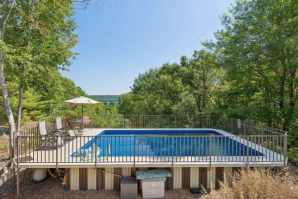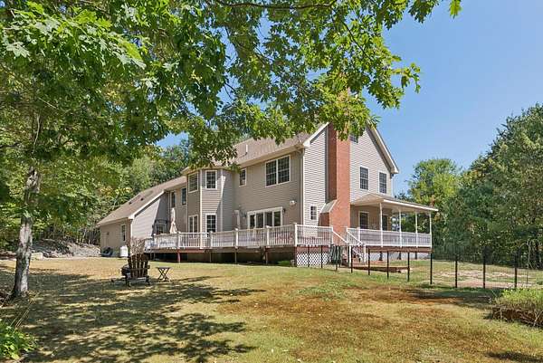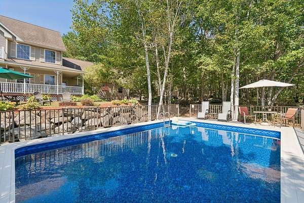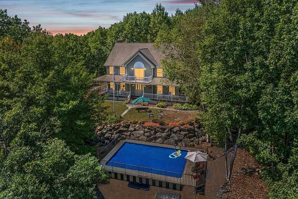 If you've been searching for the quintessential Maine lifestyle, close to lakes, trails, and town amenities yet privately set with space to relax, this charming and spacious property delivers it all. Tucked away on a cul-de-sac and surrounded by more than 5 acres of private wooded land, this beautiful colonial offers a rare blend of privacy, space, and picturesque views in the heart of Raymond. Built in 2001 and offering over 3,100 square feet of living space, the home features three bedrooms with a thoughtful split-bedroom layout, 2.5 baths, and flexible space ideal for an additional home office, hobby room or expanded closet. One of the home's most captivating features is the year-round view of Panther Pond, best enjoyed from the expansive wraparound deck that's perfect for entertaining, quiet mornings with coffee, or relaxing evenings outdoors. The above-ground pool adds to the summer lifestyle, creating a private retreat right in your own backyard, and just in time for summer. Inside, the home offers generous living spaces and a kitchen designed with entertaining in mind, highlighted by a Viking range, Sub-Zero refrigerator, and wine fridge. The primary suite serves as a peaceful sanctuary with a gas fireplace, whirlpool tub, and a private balcony overlooking the serene property and pond views. Distinctive details throughout include custom built-ins, a charming stained-glass moose window, surround sound with indoor and outdoor speakers, and central vacuum. For those looking to personalize or expand, the home offers exceptional potential with two unfinished box-truss spaces totaling nearly 1,000 square feet, along with a full basement ready for future possibilities. Ideally located just minutes to major lakes and ponds, 10 minutes to North Windham and 30 minutes to Portland, this property offers the perfect balance of convenience and quiet Maine living.