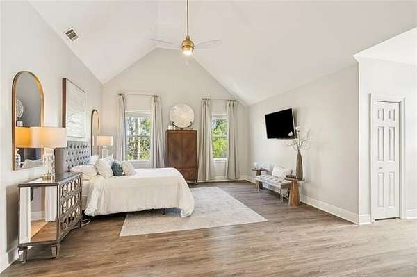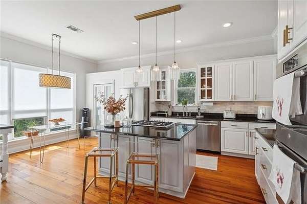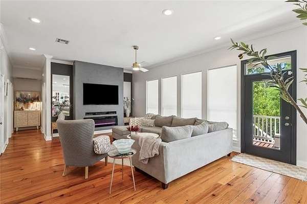 This exquisite large home, nestled on over an acre and a half of stunning natural beauty, offers an idyllic retreat with 4 spacious bedrooms and 3.5 bathrooms. The interior is highlighted by gorgeous fresh designer paint and all hard-surface flooring throughout. The living room features an inviting electric fireplace, while an additional sitting room/dining area boasts a cozy gas fireplace. The open floor plan seamlessly flows into a spacious kitchen with a central island, perfect for entertaining. The massive primary bedroom offers an abundance of storage, complemented by a huge walk-in closet with custom shelving. The primary bathroom feels like a private spa, complete with a standalone tub, separate shower, and a generous double vanity with lots of storage. Additional bedrooms are generously sized, providing comfort and space for all. The entire bottom floor is designed for practicality, offering ample storage for cars, a boat, and personal items. With water heaters and one AC unit under 5 years old, and another AC unit brand new, this home has been thoughtfully updated with a new lift station/pump grinder and a new exterior panel box. Truly too many features to list in this incredible property!