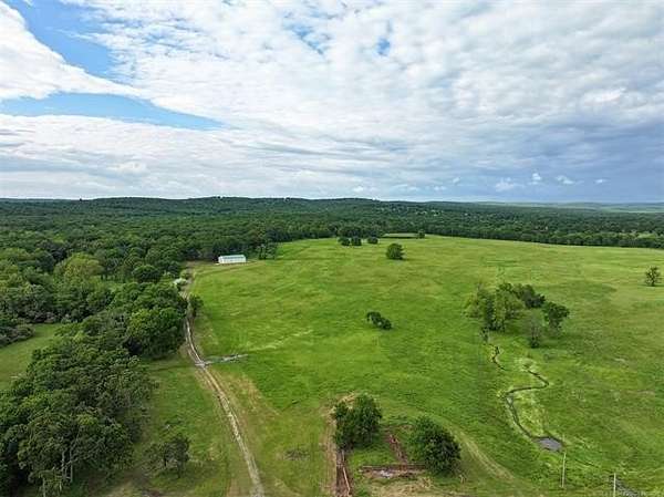 Experience country living at its finest on this stunning 488-acre property in Eastern Oklahoma. This sprawling estate offers the perfect blend of natural beauty and practical amenities, with approximately 50% lush pastures and 50% hardwood forests.