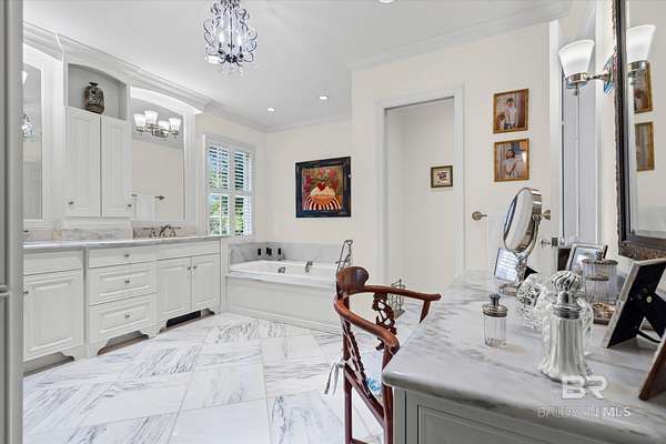 Rare opportunity for an exquisite Spring Hill Estate with timeless architecture and lush gardens! Tucked away at the top of the Pinebrook neighborhood in the heart of Spring Hill, this exceptional property offers rare privacy amid 1.2 acres of amazing, landscaped grounds. Designed by renowned architect Eugene H. Gray, this 4-bedroom, 3.5-bath residence showcases over 5,000 square feet of living space surrounded by garden vignettes featuring sculptures, a pergola, fountains, a gazebo, and variety of mature plants and trees. Built in 1978, the home exudes classical elegance with grand proportions and exquisite architectural details sourced from New Orleans, Philadelphia, and France. The gracious living and dining rooms are ideal for entertaining, while the handsome wood-paneled study with deep crown molding and a wood-burning fireplace offers an inviting retreat. A bright, spacious sunroom spans the back of the home, opening onto a flagstone terrace that overlooks the gardens- perfect for gatherings. The chef's kitchen is beautiful and functional, featuring high-end appliances and abundant custom cabinetry. A charming breakfast room adjoins the kitchen. A first-floor bedroom with ensuite bath provides flexibility for a potential downstairs primary suite. The luxurious primary suite and private office occupy half of the second floor, highlighted by a stunning Alabama white marble bath and two lovely closets. Two additional large bedrooms upstairs with a shared bath offer generous closet space. Additional amenities include a wine cellar, whole-house generator, half bath in garage, large walk-in attic, plantation shutters upstairs, an under-house two-car garage with ample storage, plus a wine cellar with its own cooling system. From its architectural pedigree and refined interiors to its lovely gardens and serene setting, this home embodies the best of Spring Hill living--timeless, elegant, and truly one-of-a-kind. Make your appointment today to see this Spring Hill gem!