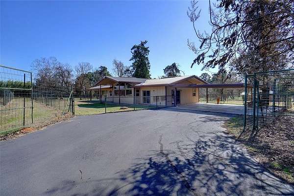 In addition to a ranch or residence, property could be a resort, or an agritourism venue, or a bread and breakfast location. Over 53 acres (with recent survey), with a pond, multiple barns, kennels, pastures and house. A commercial building also located upon property that recently served as an exotic veterinary hospital with kennels. All buildings relatively new (dates of construction unknown but can be confirmed during process), steel construction and metal roofs on all structures. Either way, there is lots of room left to build, develop or simply relax and enjoy.