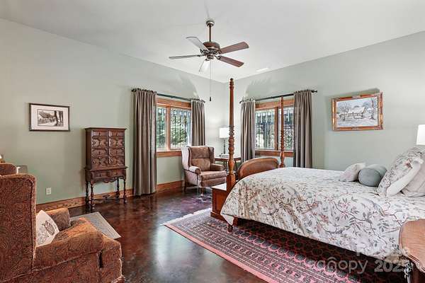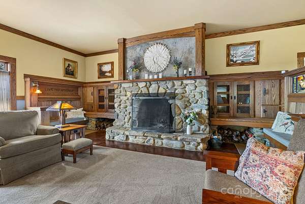 BUILT-IN EQUITY - over 800k below September 2025 appraisal! Video Available. If you are searching for a one-of-a-kind estate that will be the envy of your friends, look no further than 111 Flora Rose Trail, Asheville NC. Nestled on 3 private acres in the exclusive Rosy Hills gated community, this distinctive mountain retreat blends serenity, luxury, and convenience; only 10 minutes from Asheville's vibrant downtown and the scenic Blue Ridge Parkway. Showcasing a refined nod to Arts & Crafts architecture, the home boasts panoramic mountain views from both sides, custom artisanal oak finishes and built-ins throughout, and radiant in-floor heating beneath polished concrete floors for both modern comfort and easy maintenance. Expansive windows frame the breathtaking landscape and invite the outdoors in. Designed with entertainers in mind, the estate features multiple upscale private spaces for hosting large groups; a winding garden path that encourages peaceful reflection; and a spacious, light-filled artist studio that provides an inspiring retreat to create or recharge. For those seeking a turn-key experience, the carefully curated designer furniture is available as well. Whether you are seeking a primary residence, a second home, or a luxury vacation rental, this property offers unmatched craftsmanship and mountain living at its finest.