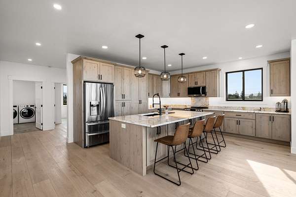 Be the first to own this newly constructed barndominium set on a spacious 2-acre lot! The home features 4 bedrooms, 3 bathrooms, and 3,200 sq ft of living space, plus an impressive 1,200 sq ft heated shop/garage with extra parking. Ideally positioned for future expansion, presenting an excellent opportunity for those looking to build a second shop or barn, add a home occupation, guest house, or short-term rental, plus space for horses! With R-1 zoning and minimal covenants, the possibilities are wide open. Inside, enjoy custom finishes, expansive windows, mountain views, and a huge covered patio. The home is also pre-wired for a hot tub, adding to its comfort and appeal.