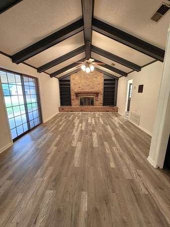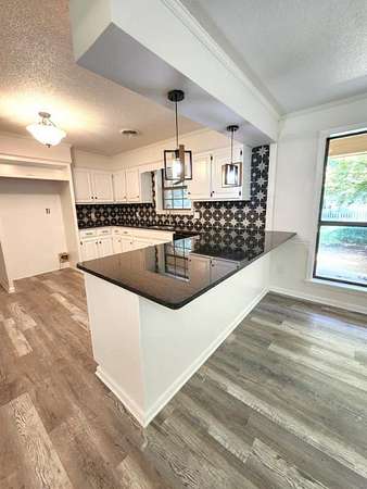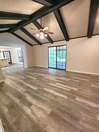 Carr Vista - The 3,576 sq ft main house has 4 bedrooms/3.5 bathrooms, formal dining between 2 extra large living rooms w/ fireplaces, wet bar, a breakfast nook, and a huge laundry room w/ custom pantry & storage. Tons of cabinets in the updated kitchen, plus new quartz countertops, stainless appliances, a 4-seater island, and a decorator backsplash. All new paint and flooring throughout. Owner's suite has his & hers separate vanities w/ dbl closets in a Jack & Jill style, and all bedrooms have access to patios surrounding the home. The 900 sq ft studio apartment has an additional efficiency kitchen & full bathroom, and the 1500 sq ft shop is wide open w/ substantial storage in the back. Lee County Schools. All info subject to verification.
