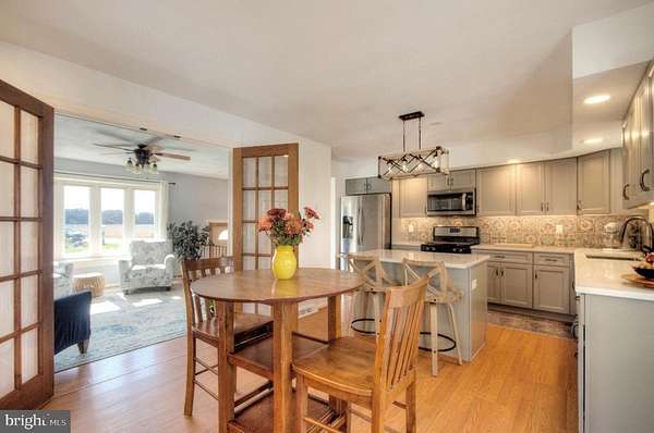 Welcome to your dream home! This property seamlessly blends modern amenities with serene countryside living on 2.4 picturesque acres, nestled amidst protected farmland and offering stunning water views with a creek running through. This stunning residence offers comfort and elegance.The asphalt driveway, paved in November 2024 and sealed in June 2025, leads to an impressive Amish-built barn (2022) with an oversized door, garage door lift, EV charger, and is fully wired. The home features a 30-year roof with 17 owned solar panels (2020).Inside, discover a newly renovated kitchen (2024) with soft-close cabinets, quartz countertops, and updated lighting. Enjoy under-cabinet lighting and new stainless steel appliances (2021) including a gas stove, over-range microwave, fridge, and dishwasher.Relax on the deck (2022, stained summer 2025) or under the awning over the patio (2021). The interior has been recently painted with durable vinyl flooring throughout. The property includes a professionally landscaped perennial garden and a small orchard (Spring 2025) with apple, peach, pear trees and an invisible dog fence around the property.Cozy up by the brick fireplace or enjoy the pellet stove (2024). Additional features include a French drain, sump pump, and central HVAC. The property boasts vinyl windows with a lifetime transferable warranty. Septic, water, and fireplace are regularly maintained.Don't miss the opportunity to make this extraordinary home your own, where modern amenities meet tranquil rural charm, including a hobby farm with chickens and ducks! oh and let's not forget the house GENERATOR too! Schedule your tour today.
