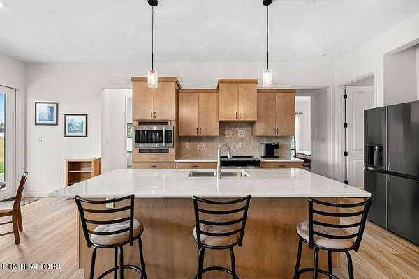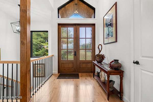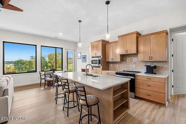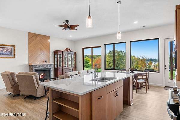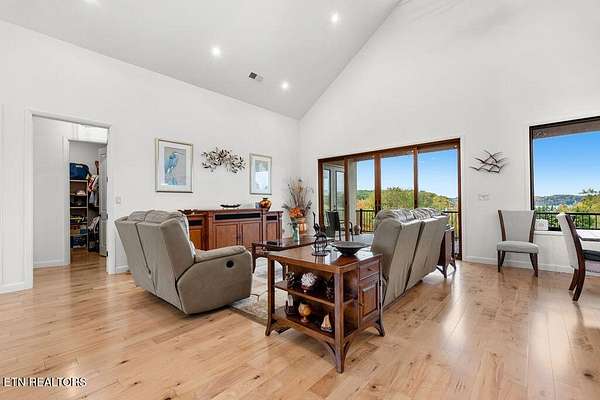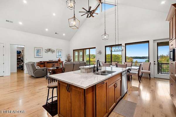 * City of VONORE LOCATION*One of a Kind! This Gorgeous Beauty is a Masterpiece. Only 3 yrs old. Fully CUSTOM All Brick offers Timeless Durability and Style. Situated on almost 3 Acres, offering Exquisite VIEWS of the TELLICO Lake and Smoky Mountains. The Covered Front Entry has beautiful Double Doors with Bubble glass leading into the large Foyer and Genuine Maple Hardwood throughout the main level. The WOW!!! factor is truly evident as you are drawn through the Great rm to a Wall of Tall Sliders Offering those Mesmerizing Views. 22' Ceilings. The Kitchen is Masterfully Crafted with Custom Maple Stained Woodtone Cabinets, Stainless Appliances, Double Ovens and Dumb Waiter. Large Center Island with Gorgeous Quartz Counters. Very Large Pantry and Laundry Rm. Split Floor Plan has Primary Suite on one end w Doors to Deck. Dream Bath has NO Threshold Tile and Glass shower, Double Vanities and Makeup Table and Private Loo. Large Closets. Other side has Guest suite w Full Bath. Dedicated Office on Lake side with view. Large Staircase leads to lower level, 10' ceilings. Family Rm is very comfortable, with great views and Cozy Stacked Stone fireplace. Full kitchen w SS Appliances, Center Island, Quartz Counters. Lower level has LVP Flooring. Large Patio across the Back is Perfect for Outdoor Dining. Lower level is Perfect for In-laws. There is a Large Workshop, 2 Car Garage, and Workout room. Then 2 additional Brs and Baths on this level. Bull nose corners. Stamped Concrete Patio. GEO Thermal Heat, Central AC. Outside Elevator from Patio to upper Deck. Upper Deck has a summer kitchen for easy entertaining. Many other features. Come see for yourself.