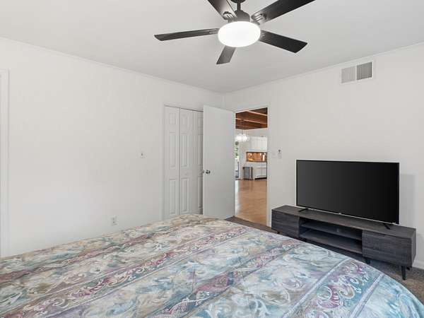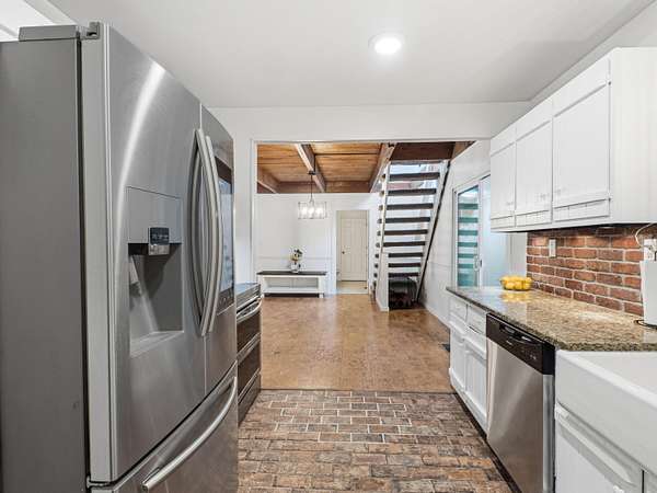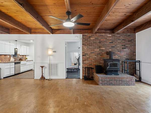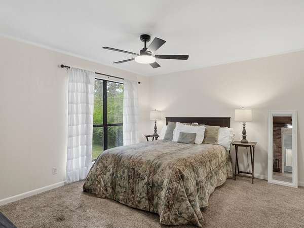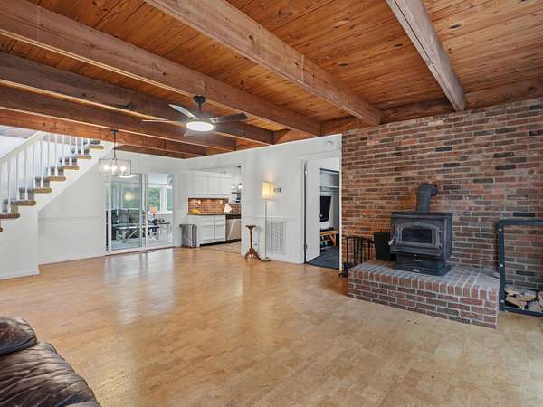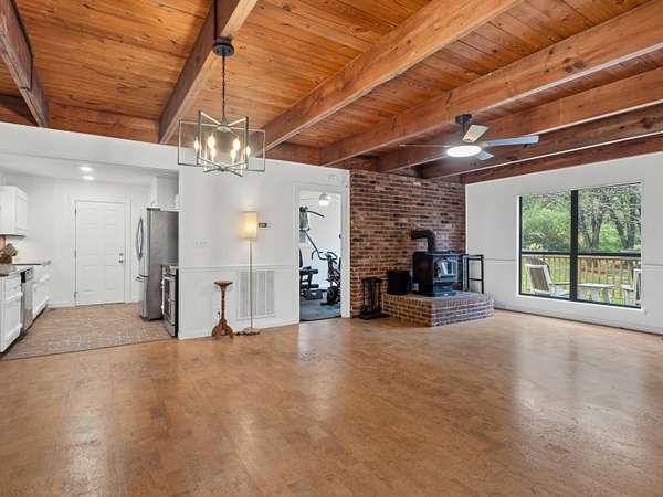 - Beamed Ceilings, Ceiling Fan(s), Granite Counters, Open Floorplan, Pantry, Primary Downstairs, Split Bedrooms, Walk-In Closet(s)