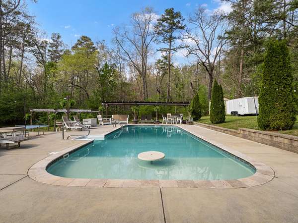 Welcome to 111 Hurtt Ct, your private hacienda carved out of the forest. You've found that peaceful easy feeling or that party place, whichever you've been dreaming of. The home has been lovingly cared for and adapted for space. Check out that deck. Put your lounge chairs anywhere. As you enter from your choice of Kitchen or Bonus room #1 you'll immediately notice the open airy floorplan. The kitchen, central to all has the choice appliances with the connected refrigerator and the double, single small, or single big oven for energy efficiency when you don't need the volume. A large Dining combined with Greatroom cover the whole central floor with a woodburning Country Hearth Stove to satisfy your comfort level. The Master Bedroom w/ensuite, a Full Bath are on 1 side along with the Laundry Room and 1 Bedroom on the other side currently a gym (equipment negotiable) can be converted back to a ligit bedroom. To the rear is that Bonus Room #1 with it's own woodburning Flame View stove. The windows draw your eyes to the outside. Maybe some wildlife today? Past the Bonus Room are Bedrooms 3 and 4. If this wasn't all, upstairs you'll find the expansive Bonus Room #2. Now, let's head out to the Oasis. First the Pool House with the outdoor kitchen and full bath. Room for everyone to congregate at the bar. The pool with sunpad and some negotiable deck furniture. More storage? Under the home is a ''1 car garage''. Where the RV sits? 30 and 50 amp service on a separate meter, water to it, and closer to the home, waste access. This site would be great for an ADU for family members or a STR if you don't have an RV to put there. Come see the life you've worked for. The life you deserve.
