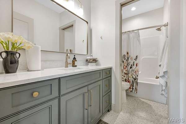 Two additional secondary bedrooms are located on the main floor, each featuring 6x6 walk-in closets & lighted ceiling fans. They share a beautifully appointed full bathroom designed with a pocket door to separate the vanity from the tub/shower combo for added privacy.