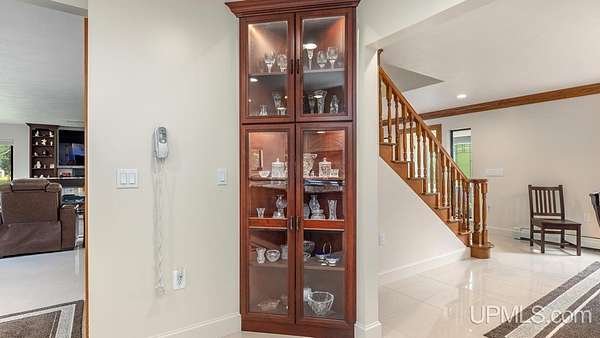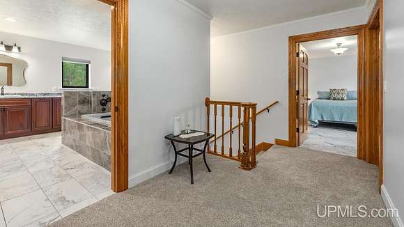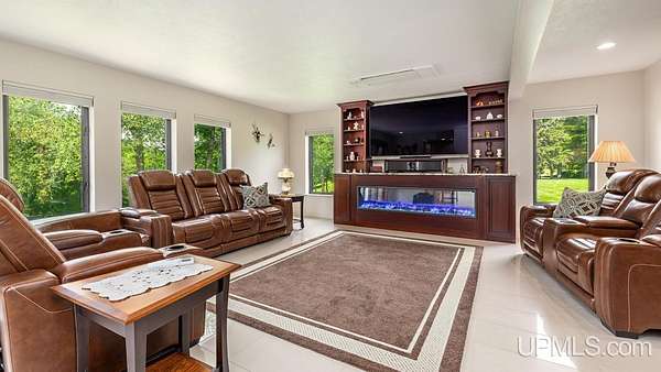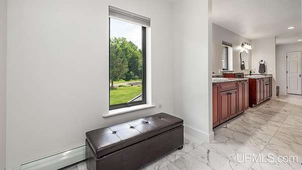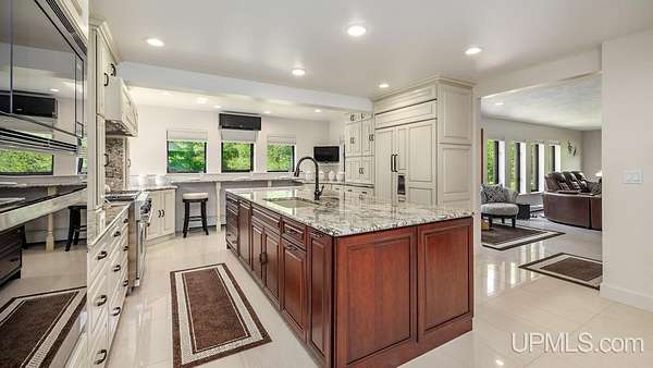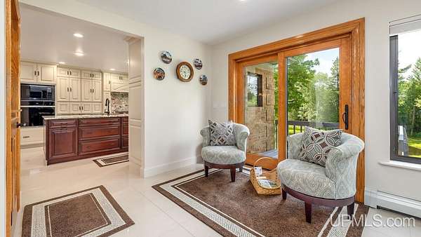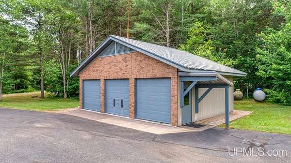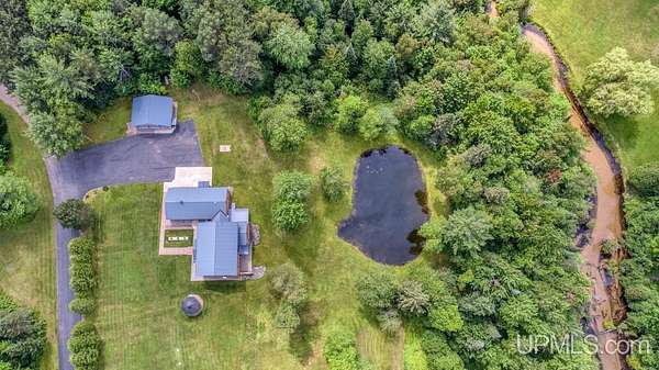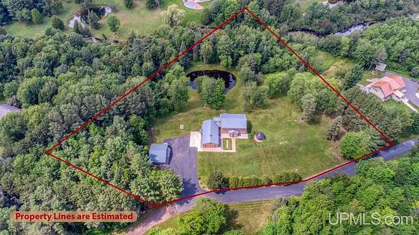 Originally built in 1992, this home underwent extensive renovations starting in 2020, completed in June 2024. Taken down to the studs in most areas, it now features a modern and efficient layout. The upper level includes two large bedrooms with spacious walk-in closets, a shared bath with Kohler fixtures, Italian porcelain tile, walk-in tile shower, soaker tub and custom Omega cabinetry. The main level boasts a redesigned kitchen with high-end Omega Custom cabinets, granite countertops, a Wolfe oven and stove, Sub-Zero refrigerator, and an eating bar overlooking the pond. The living room features custom cabinets and an electric fireplace, while the study/office offers built-in storage and solid oak doors. Additional highlights include a main floor laundry room with custom cabinetry, a reconfigured half bath, pantry closet and new air conditioning units throughout. There is also a large "bonus" room (1014sf) that can be turned back into an attached garage if desired. Basement has a 3rd bedroom, full bathroom, workout room, 2nd living room and kitchen. There is a walk-out to the back yard, perfect for entertaining. The home also has new Italian porcelain flooring, updated plumbing and electrical systems, and custom Baldwin hardware. Situated on 3.5 acres with access to groomed walking trails, this property offers serene living with thoughtful upgrades throughout. The exterior features new doors, storm panels, and Bali window treatments. With a fully renovated heating system, two 1000-gallon propane tanks, and ample storage, this home combines luxury with practicality. A separate 32x24 three-car detached garage adds to the convenience of storage & parking. This beautifully updated brick home also has a metal adobe-style roof and in addition to the private pond, the property extends just past the far bank of Cherry Creek.