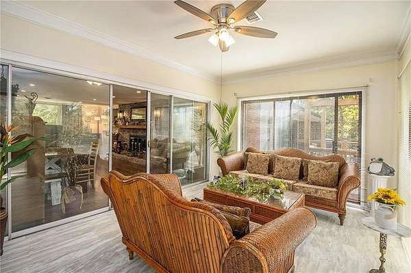 Welcome to this adorable 4-sided brick ranch full of style, charm, and endless space, perfectly set on 4.7 private acres! This must-see home features 3 bedrooms and 2 full baths, a spacious family room with a real wood-burning fireplace, and gorgeous hardwoods throughout. The split bedroom floor plan offers privacy, with a huge primary suite boasting a large walk-in closet plus a second oversized closet. Across the back of the home, a stunning 4-season sunroom spans the entire length, offering access from each rear room and overlooking the beautiful fenced backyard. Step outside to enjoy a pergola-covered deck and a covered patio that also runs the length of the home, creating multiple spaces to relax or entertain while taking in the acreage views. The partially finished basement continues the wood-burning fireplace downstairs, while the unfinished side with 10-foot ceilings, windows, patio access, storage space, and an additional laundry hookup is ready for your vision. There is a Laundry room on the main floor as well as the basement. The updated kitchen shines with quartz counters, stylish backsplash, stainless steel appliances, and seamless hardwoods. With newer roof, gutters, HVAC, and water heater, this low-maintenance home combines country living with all the in-town conveniences--just minutes to shopping, dining, and I-75! Enjoy true country living with county taxes only steps from the city--bring your chickens or any farm animals, as there are no restrictions! Plus, an additional .62-acre adjoining lot provides even more space and possibilities. All this just minutes from shopping, the outlet mall, restaurants, and Buc-ee's! This property is the sanctuary you have been searching for!