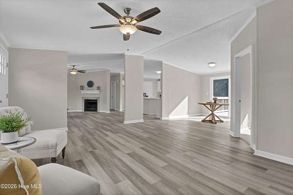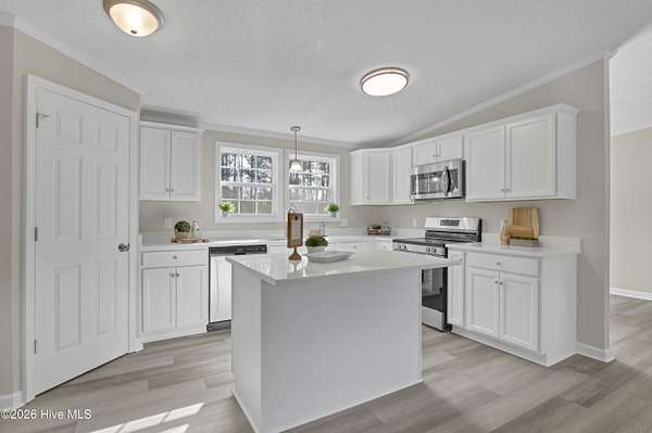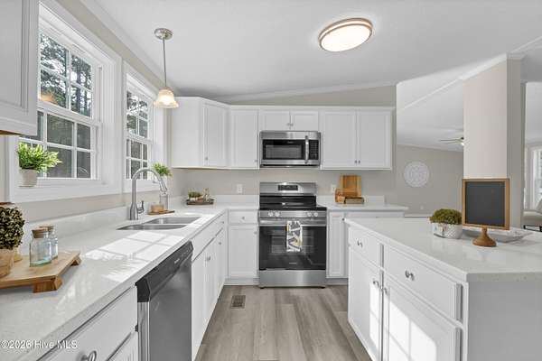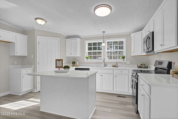 Like NEW!!! This beautifully renovated 4 bed, 2 bath home with NEW windows sits on a spacious 1.79 acre lot and is conveniently located to local businesses, schools, and shopping! Upon entering, you will appreciate the modern open floor plan with a vaulted ceiling and cozy wood-burning fireplace in the living room! Stylish NEW LVP floors extend into the dining room nook and kitchen which features brand NEW white kitchen cabinetry and a kitchen island with NEW quartz countertops and sleek NEW stainless appliances, as well as NEW plumbing and lighting fixtures! Also, there's plush NEW carpet, fresh paint and much more throughout! The primary suite features a vaulted ceiling, walk-in closet and a roomy master bath with a separate walk-in shower and soaking tub and a NEW premium height dual sink vanity with a NEW quartz top! When outside, enjoy the privacy of the large lot and view of the mature landscaping from the comfort of the 10' x 17' front porch or the 16' x 21' back deck! This one is move-in ready and priced to sell! Set up your own private showing today!