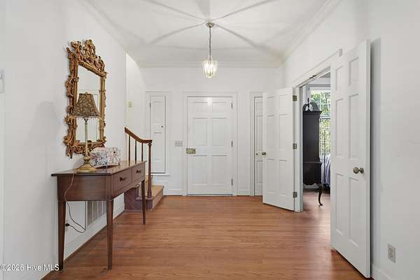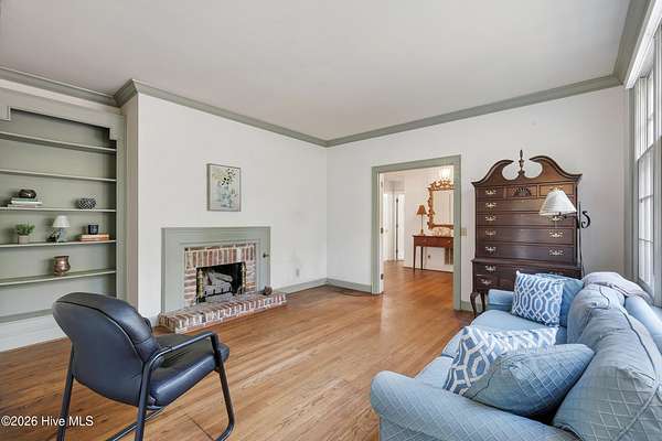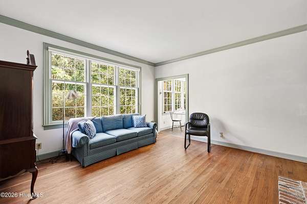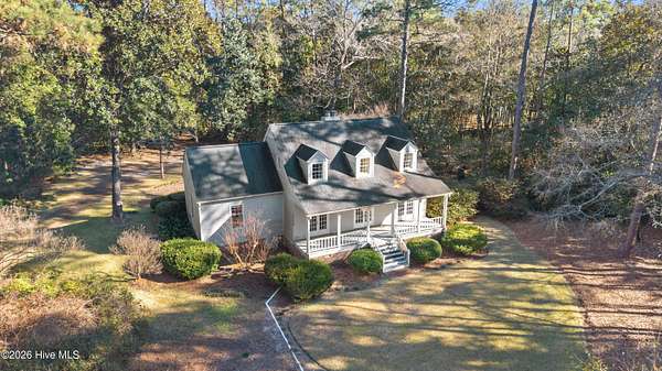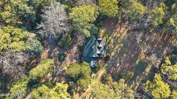Nestled in the woods just off Masonboro Sound Road, this charming three-bedroom, two-bath home sits on a private 2.513-acre lot. Inside, you'll find beautiful hardwood floors, abundant storage throughout, and a primary bedroom conveniently located on the main floor. A set of triplet French doors adorns the front porch. A double-sided fireplace adds warmth and architectural interest. The home is perched high on the land, offering privacy and peace of mind. With no HOA and deeded water rights to Hewletts Creek, this property offers a rare blend of seclusion and coastal access. While the address is Magnolia Drive, the driveway entrance is located off No Name Road. Also, please note that this property is in the Painted Bunting's migratory pattern arriving in coastal North Carolina mid-April to breed. Location is so quiet and secluded you can usually hear the ocean from the property, and sometimes the faint sound of sea buoys. Covenants and Restictions, plus deeded water access in documents.