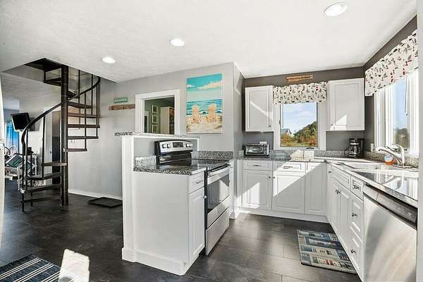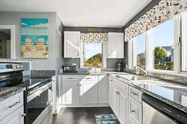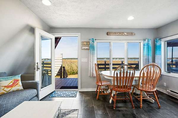 Est $7,050/moBiddeford Pool's iconic A-Frame with utterly gorgeous views and sunsets over the Pool, and a very spacious yard, and 2 miles of white sand beach just across the street. The home has been very nicely remodeled with a lovely kitchen, full first floor bath with laundry, first floor bedroom, and two more bedrooms on the second level. First and second floor decks take great advantage of the breathtaking views. 1.84 acres of land offers significant expansion potential.